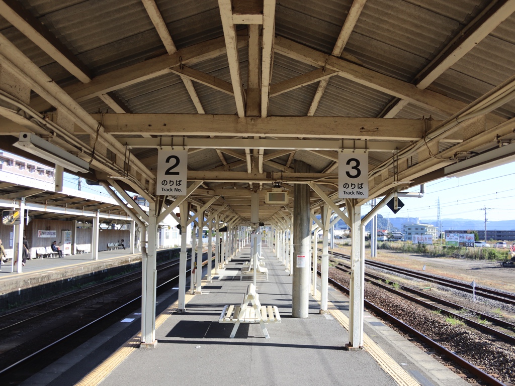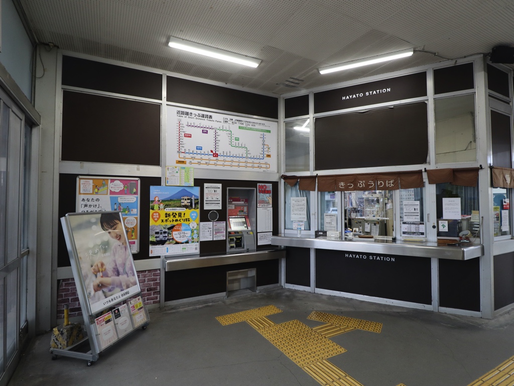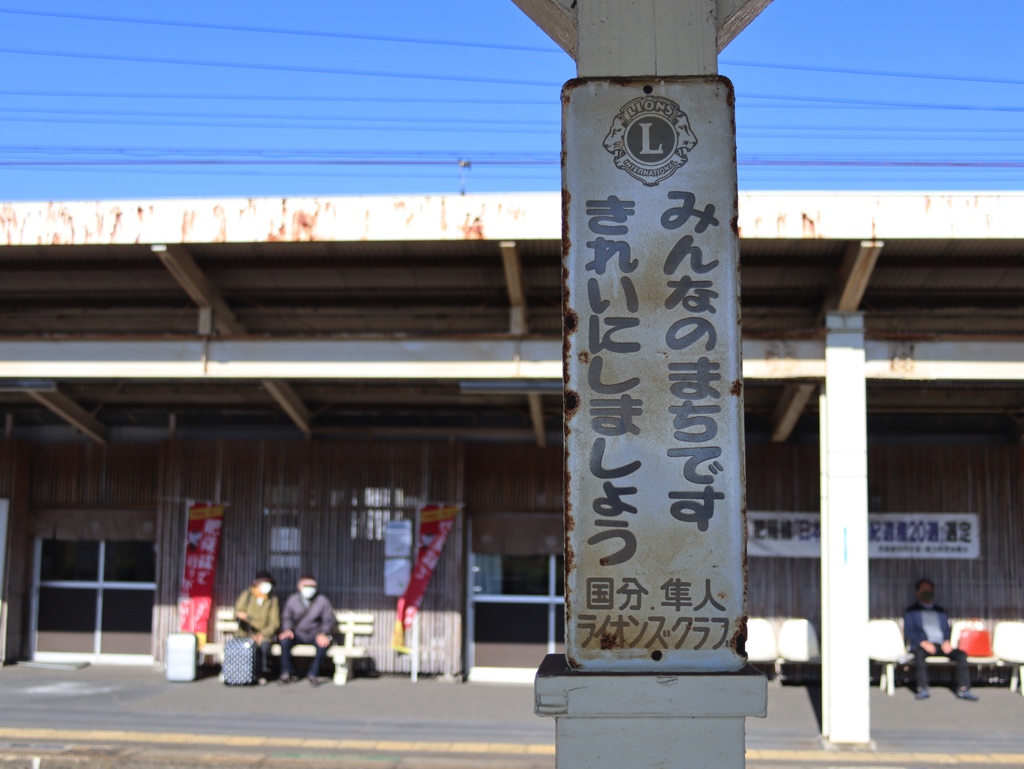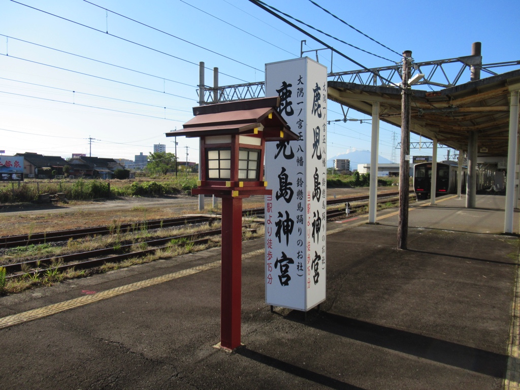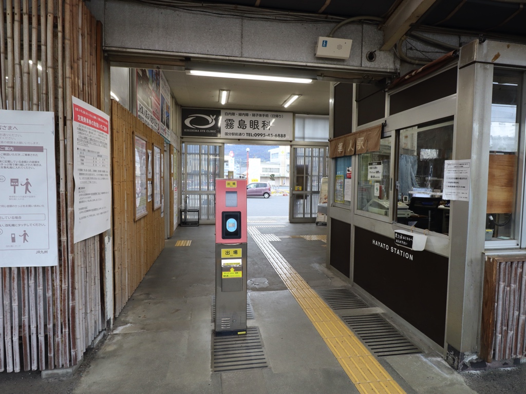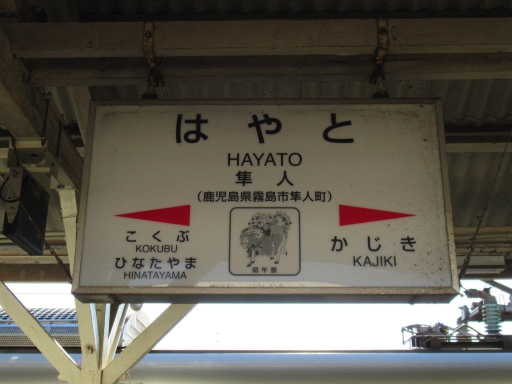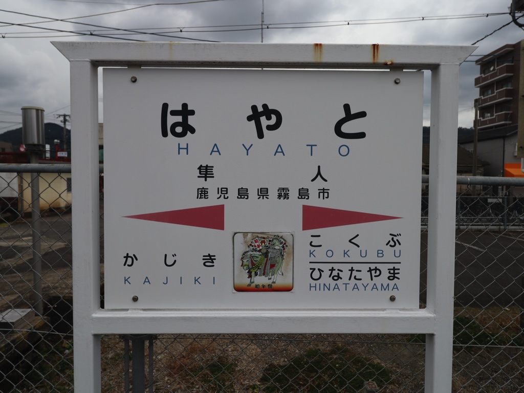 隼人駅 日豊本線と肥薩線の駅、隼人の改札画像です。 駅名標、当駅には日豊本線と肥薩線の2路線が乗り入れ、肥薩線は当駅が終着駅となる 横長タイプの駅名標も設置されていた 駅名標、当駅が最寄りの鹿児島神宮で行われる「初午祭」のイラストが入る 取材時、国鉄時代に設置された駅名標が残っていたが、残念ながら現在は撤去されてしまった 当駅設置の名所案内看板 駅舎、水戸岡鋭治氏監修デザインの、竹材に覆われたコンクリート製の地平駅舎となっている。駅名の左側には島津家の家紋が入る 改札口、有人駅であり、IC専用簡易改札機が設置されている。なお、交通系ICは日豊本線乗車時のみ利用可能であり、肥薩線乗車時は利用できないため注意しよう 出場側から見た改札口の様子 当駅にはみどりの窓口および自動券売機が設置されている 駅舎内部には待合室が設けられている ホームは2面3線となっており、列車の行き違い・折り返しが可能である 当駅のホーム上屋は木造の趣ある造りとなっている ホーム上には木製のベンチが設置されている ホーム上には鹿児島神宮の看板と灯籠が設置されている 1番のりばの番線標は国鉄時代に設置された行灯タイプとなっていた 取材時、当駅のホーム上には国鉄時代に設置された電照式ののりかえ案内看板が残っていたが、残念ながら現在は撤去されてしまった 跨線橋入り口部分にも国鉄時代に設置されたと思われる橋看板(ハシカン)が残っていたが、残念ながら現在は撤去されている 取材時、ホームの柱には国分・隼人ライオンズクラブが設置したホーロー看板も残っていた。駅もみんなのまちもきれいに利用したいものである ————————————— 所在地:鹿児島県霧島市 乗入路線 ■ 日豊本線 ■ 肥薩線(えびの高原線)