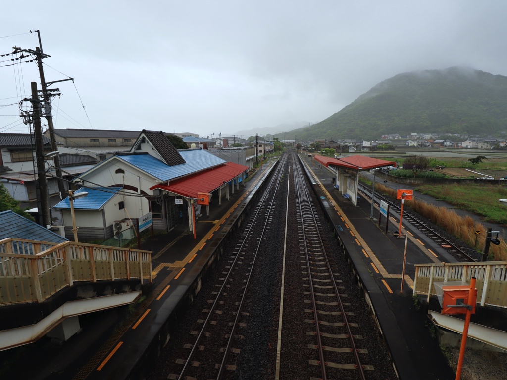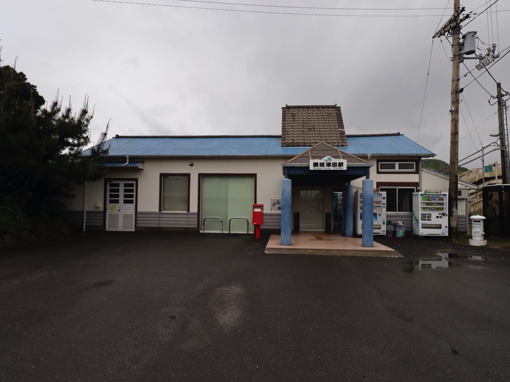 讃岐津田駅 高徳線の駅、讃岐津田の改札画像です。 駅名標、当駅には朝夕に限り一部の特急「うずしお」号が停車する 駅舎、青い屋根が特徴的な駅舎は国鉄時代の木造駅舎を民営化後にリニューアルしたものである 当駅は無人駅となっており、改札口は存在しない ホーム側には改札ラッチの跡が残る 駅舎内部は待合室となっており、自動券売機も設置されている ホームは2面3線となっており、列車の行き違いが可能である 跨線橋から見下ろしたホームの様子 当駅ではしばしば列車の交換・通過待ちが行われる 当駅の便所は趣ある雰囲気となっており、使用には勇気が要りそうだ 駅前には白ポストが設置されており、悪書追放に熱心な土地柄が垣間見える ————————————— 所在地:香川県さぬき市 乗入路線 ■ 高徳線