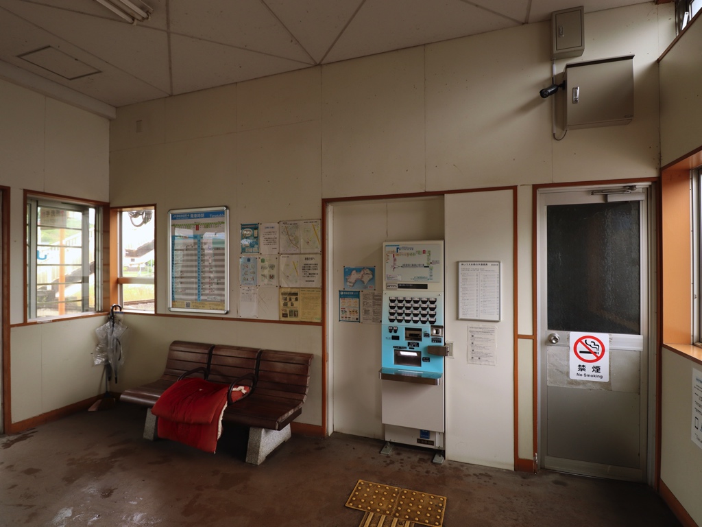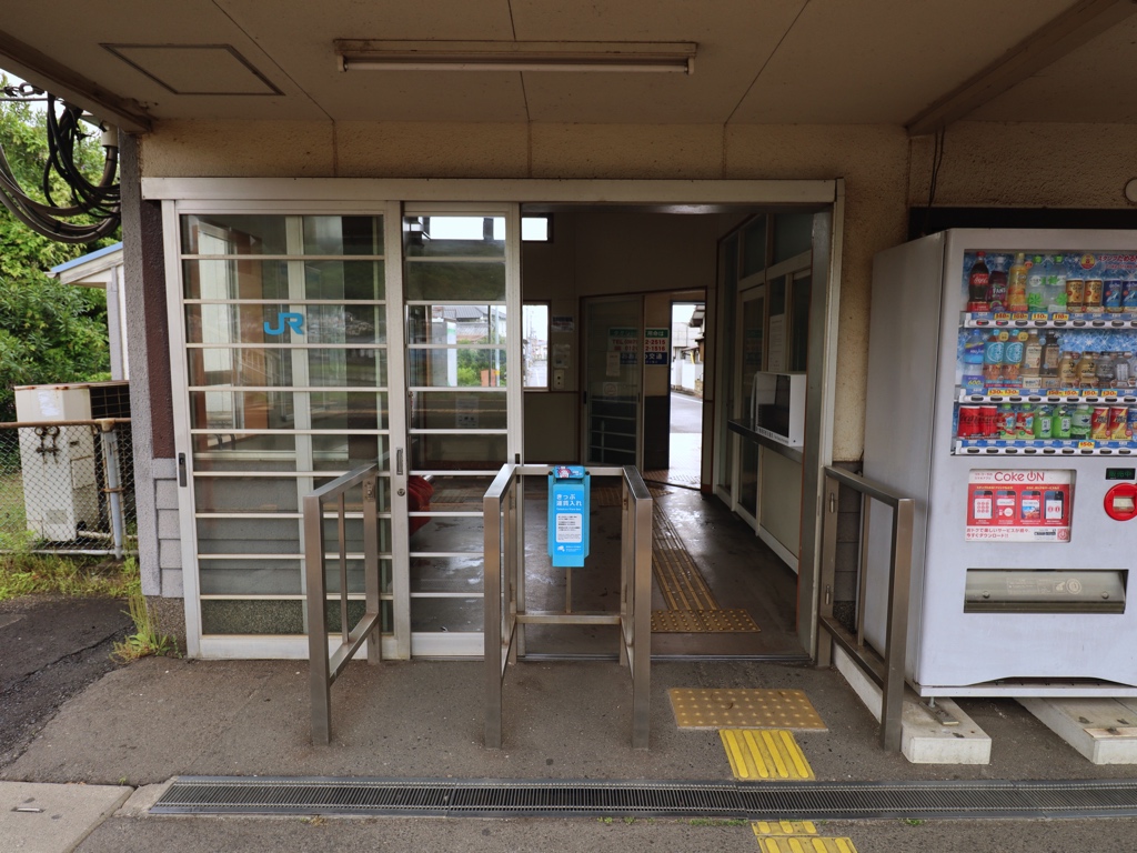 霧島温泉駅 肥薩線の駅、霧島温泉の改札画像です。 駅名標 当駅設置の名所案内看板、駅名の通り当駅は日豊本線霧島神宮駅と並び霧島温泉郷への鉄道最寄駅の1つであるが、駅近くに温泉街があるわけではなく距離があるため、当駅からバス連絡となる 当駅設置の名所案内看板 駅舎、国鉄時代に建てられた鉄筋コンクリート造りの駅舎となっている 当駅は無人駅となっており、改札口は存在しない ホーム側には有人駅時代に使用していたと思われる改札ラッチが残っていた かつての出札窓口跡は封鎖されていた 駅舎内部は広々とした待合室となっている 駅舎内には霧島周辺のイラストマップがあり、栗野から山野線が、西都城から志布志線が伸びていることから国鉄時代に作成されたものと思われる ホーム側から見た駅舎の様子 駅舎からホームへは構内踏切を渡り連絡する 構内踏切付近には「龍馬」「お龍」の顔はめパネルが設置されていた。坂本龍馬は日本で初めて新婚旅行に行ったと伝わっており、湯治のために霧島を訪れたとされている ホームは島式1面2線であり、列車の行き違いが可能である ホーム上にはカラフルなベンチが設置されていた 駅構内には錆び付いた国鉄コンテナが残されていた ————————————— 所在地:鹿児島県霧島市 乗入路線 ■ 肥薩線(えびの高原線)