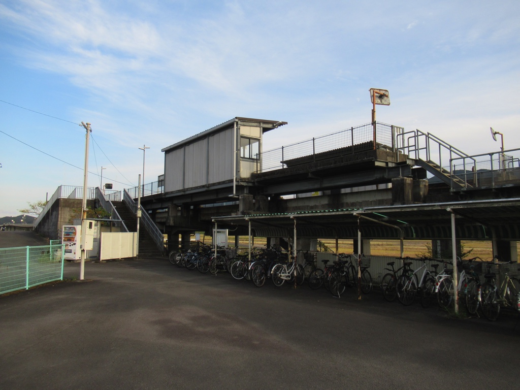 駅全景、当駅はホームがあるのみの無人駅であり、駅舎および改札口は存在しない