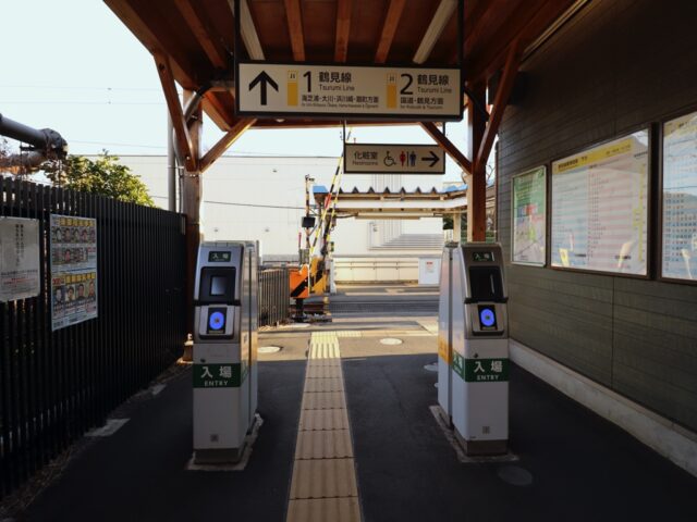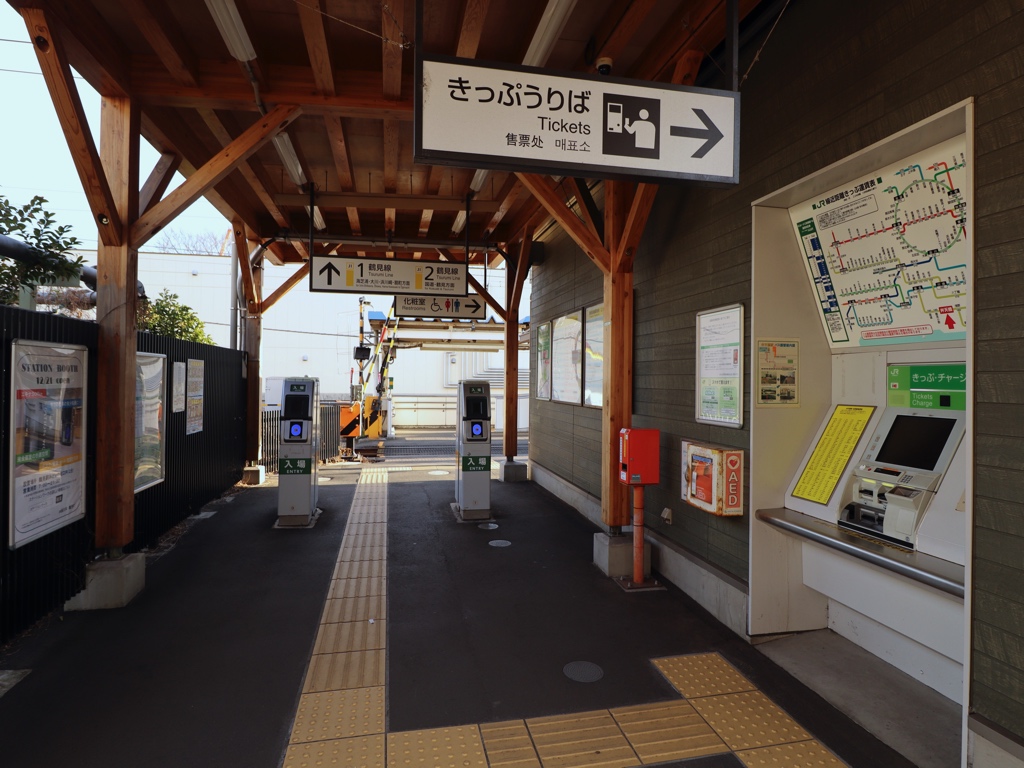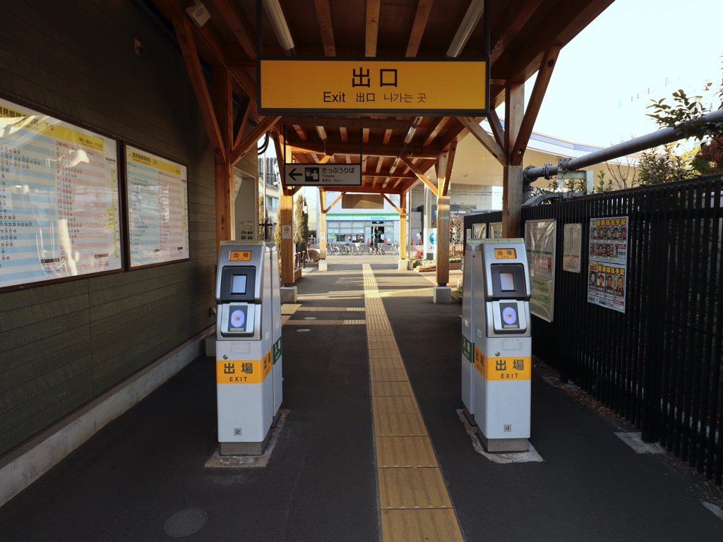 改札口、当駅は無人駅となっており、IC専用簡易改札機が設置されている