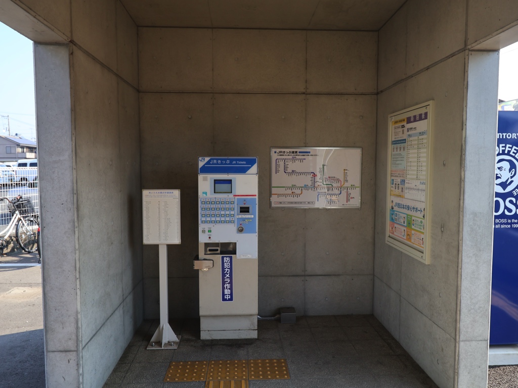 駅家駅 福塩線の駅、駅家の改札画像です。 駅名標、JR線の駅で駅名に「駅」がつく唯一の駅である 駅舎、近年改築された鉄筋コンクリート造りの簡易駅舎である 当駅は無人駅となっており、改札口は存在しない 駅舎内には自動券売機が設置されている 駅舎内には小ぢんまりとした待合スペースが存在する ホームは単式1面1線の棒線駅となっており、列車の行き違いは不可能である ————————————— 所在地:広島県福山市 乗入路線 ■ 福塩線