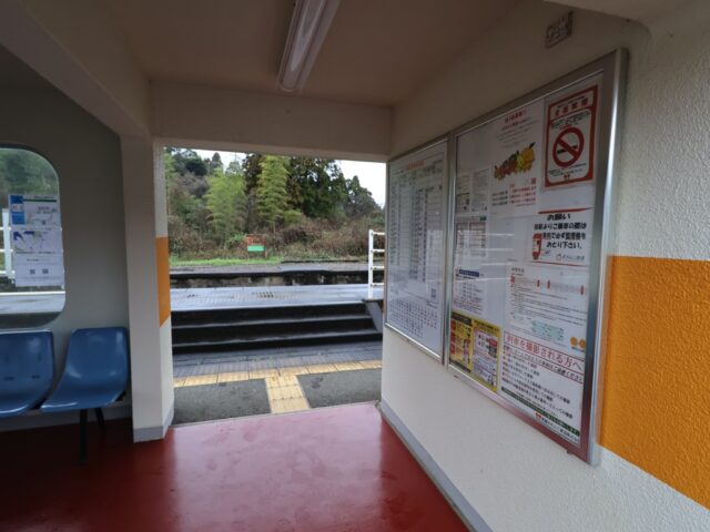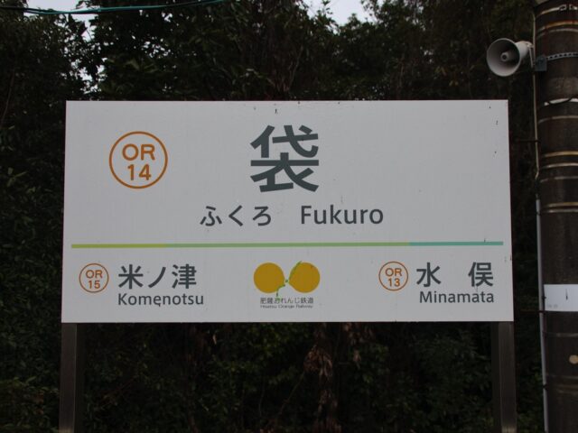 袋駅 肥薩おれんじ鉄道の駅、袋の改札画像です。 駅名標 ホーム上に「グリーンスポーツみなまた」の案内看板が設置されている 駅舎、国鉄時代に建てられたカプセル型の簡易的な駅舎である 駅舎に取り付けられた駅名の立体文字からは国鉄の趣が感じられる 当駅は無人駅となっており、改札口は存在しない 駅舎内部は小ぢんまりとした待合室となっている ホームは相対式2面2線であり、列車の行き違いが可能である ホーム上にも待合スペースが設けられている ————————————— 所在地:熊本県水俣市 乗入路線 ■ 肥薩おれんじ鉄道