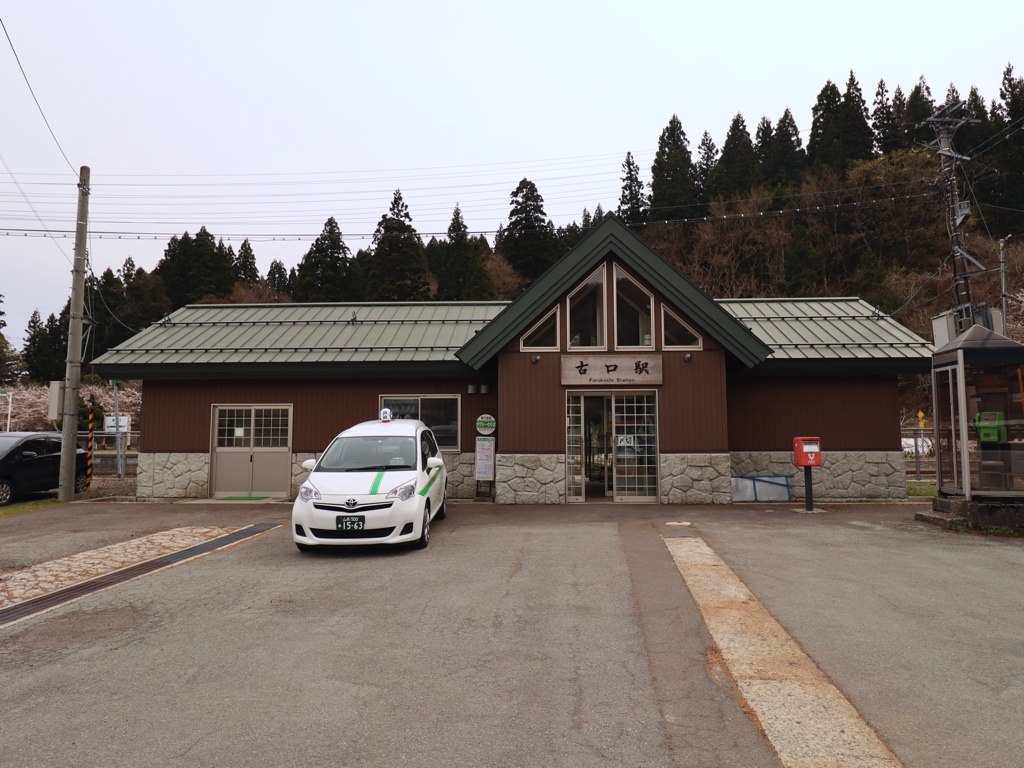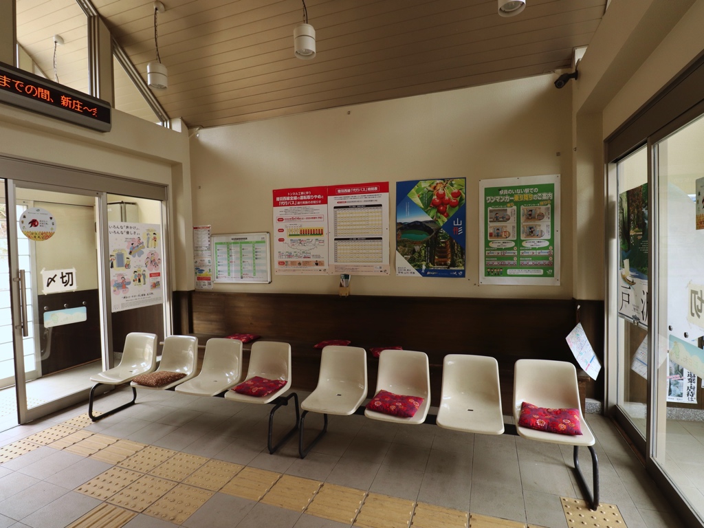 駅舎、陸羽西線の中間駅の中では最も大規模な駅舎を有する