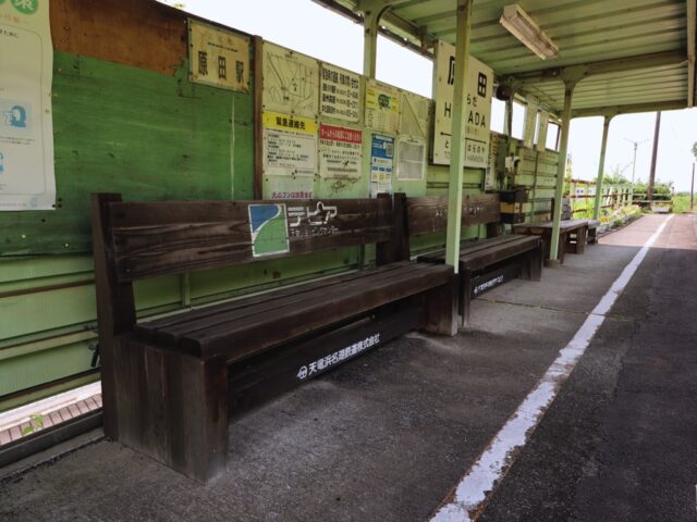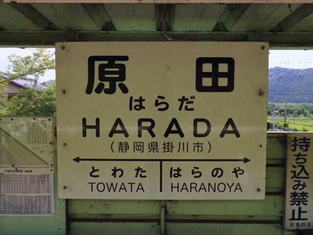 原田駅 天竜浜名湖鉄道の駅、原田の改札画像です。 駅名標 駅入口、当駅はホームがあるのみの無人駅であり、駅舎および改札口は存在しない ホーム上に待合室が設けられている ホームは単式1面1線の棒線駅であり、列車の行き違いは不可能である ————————————— 所在地:静岡県掛川市 乗入路線 ■ 天竜浜名湖鉄道
