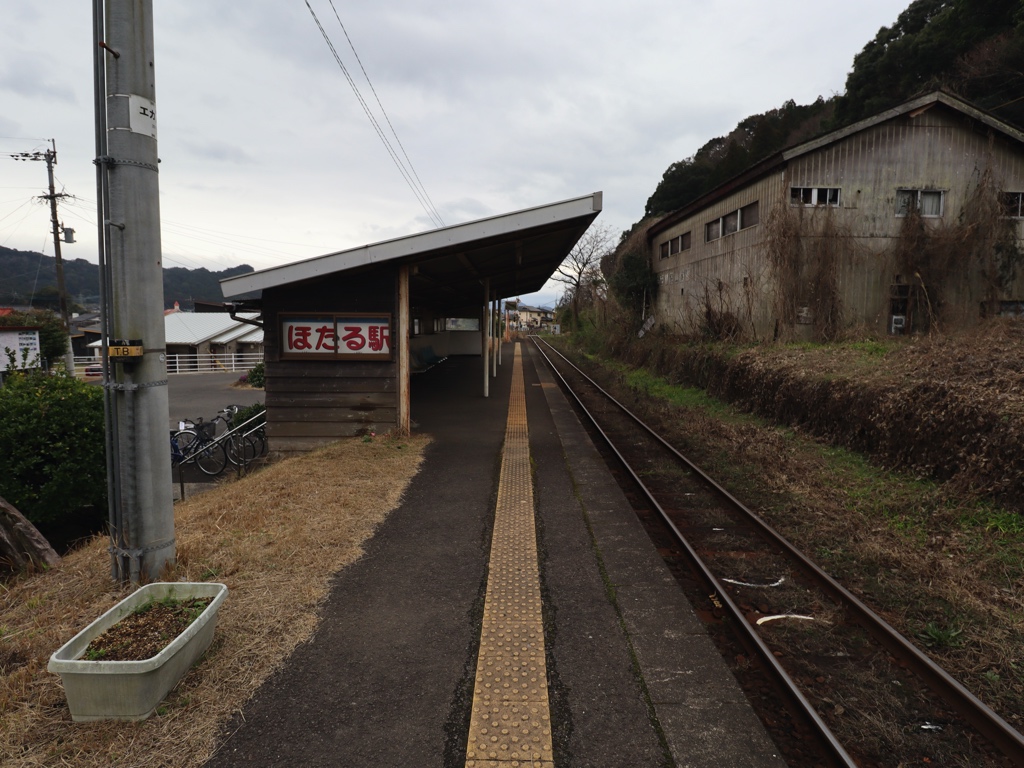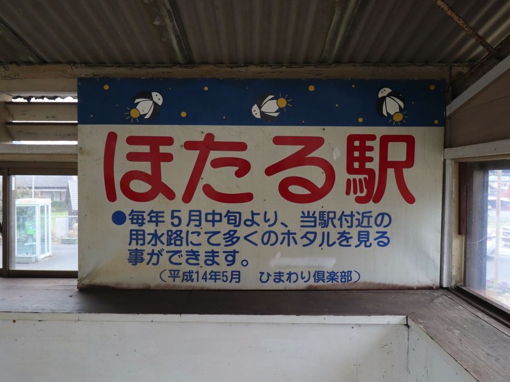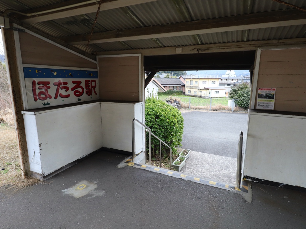 日当山駅 肥薩線の駅、日当山の改札画像です。 駅名標、イラストは入っていない 駅名標 駅全景、当駅はホームがあるのみの無人駅であり、駅舎は存在しない。駅舎のように見える建物はホーム上屋である 当駅は無人駅となっており、改札口は存在しない 当駅付近では毎年5月中旬頃よりホタルを見ることができるため、「ほたる駅」との愛称が付けられている ホーム上に待合スペースが設けられている ホームは単式1面1線の棒線駅であり、列車の行き違いは不可能である ————————————— 所在地:鹿児島県霧島市 乗入路線 ■ 肥薩線(えびの高原線)