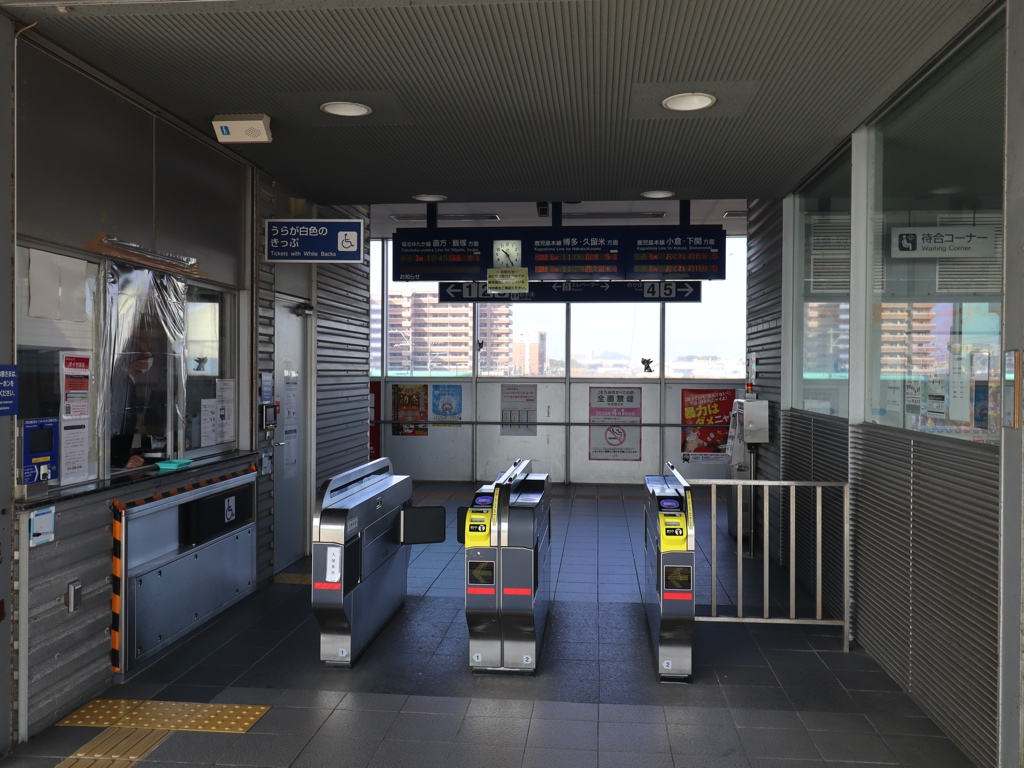陣原駅 鹿児島本線の駅、陣原の改札画像です。 駅名標、当駅は貨物駅であった東折尾駅の跡地に新設された駅である 駅舎、モダンなデザインをした橋上駅舎となっている 改札口、有人駅であり、自動改札機が設置されている きっぷうりばの様子、現在はみどりの窓口は営業しておらず、自動券売機のみ設置されている 駅舎内部には待合室が設けられている ホームは3面5線となっており、1番・2番のりばから福北ゆたか線の列車が、4番・5番のりばから鹿児島本線の列車が発着する ————————————— 所在地:北九州市八幡西区 乗入路線 ■ 鹿児島本線 (■ 筑豊本線(福北ゆたか線))