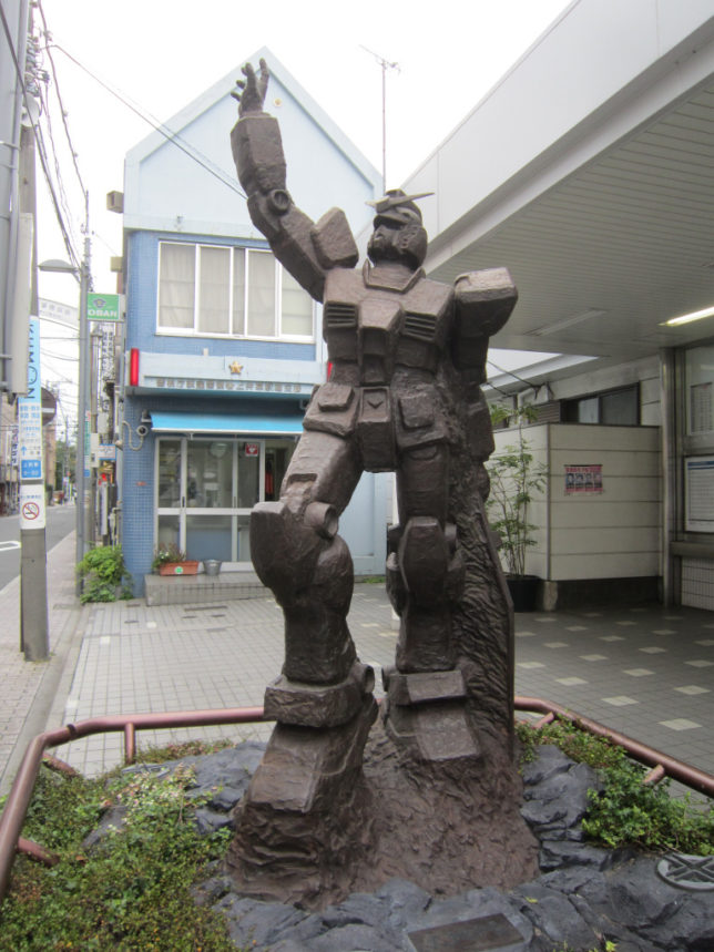 当駅は、「機動戦士ガンダム」や「ラブライブ!」等で知られるアニメ制作会社「サンライズ」の本社最寄駅である。そのため、南口の駅前にはガンダムの銅像が建てられている。また、当駅の発車メロディーはガンダムの曲となっている。