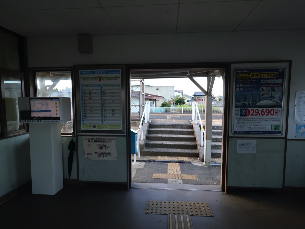 神前駅 高徳線の駅、神前の改札画像です。 駅名標 駅舎、小ぢんまりとした木造駅舎となっている 当駅は無人駅であり、改札口は存在しない かつての窓口跡は封鎖されており、自動券売機が設置されている 駅舎内部は待合スペースとなっている ホーム側から見た駅舎の様子 ホームは単式1面1線の棒線駅であり、列車の行き違いは不可能である ホーム上にも待合スペースが設けられている ————————————— 所在地:香川県さぬき市 乗入路線 ■ 高徳線