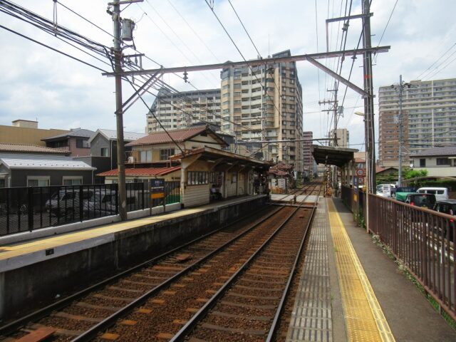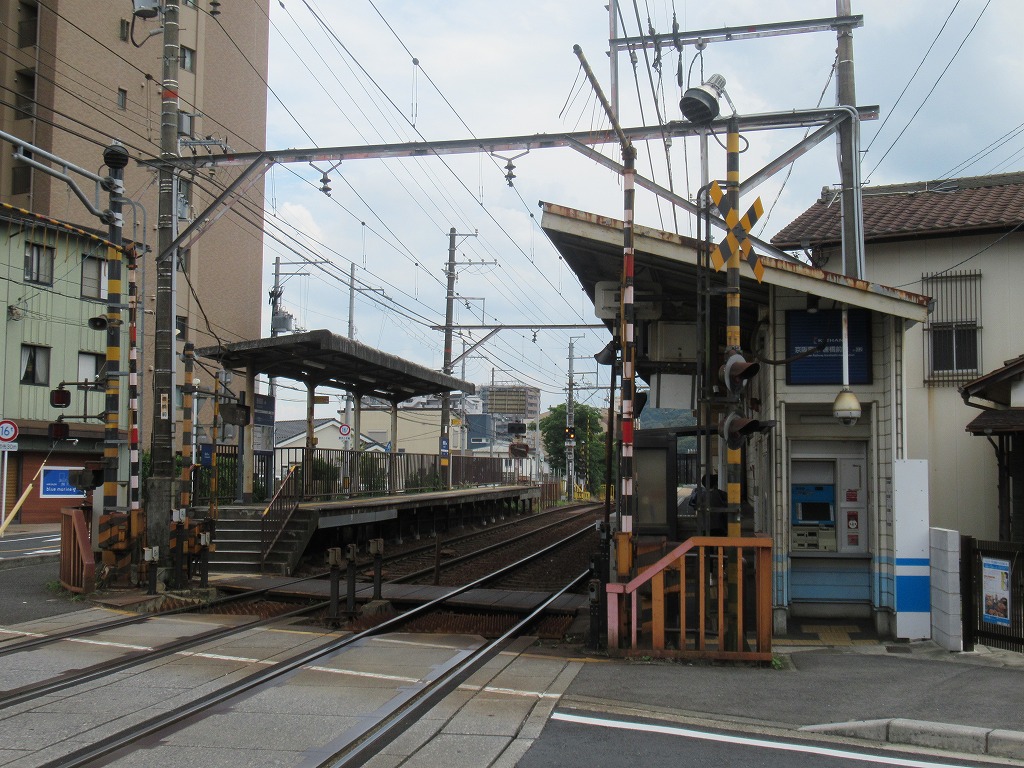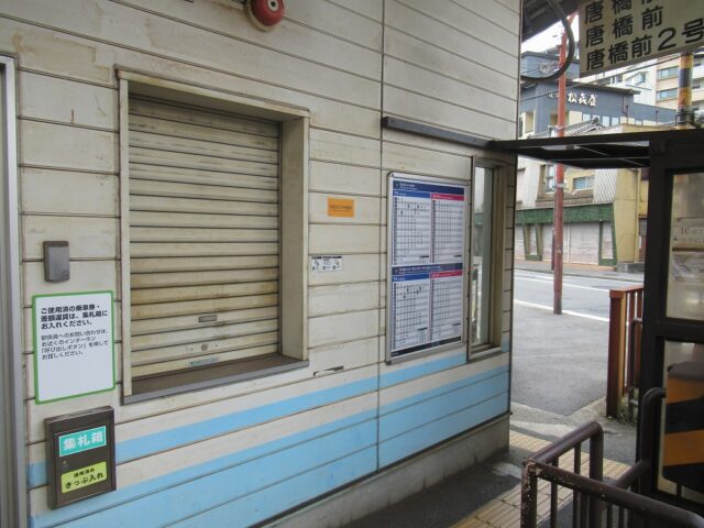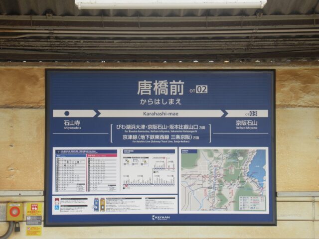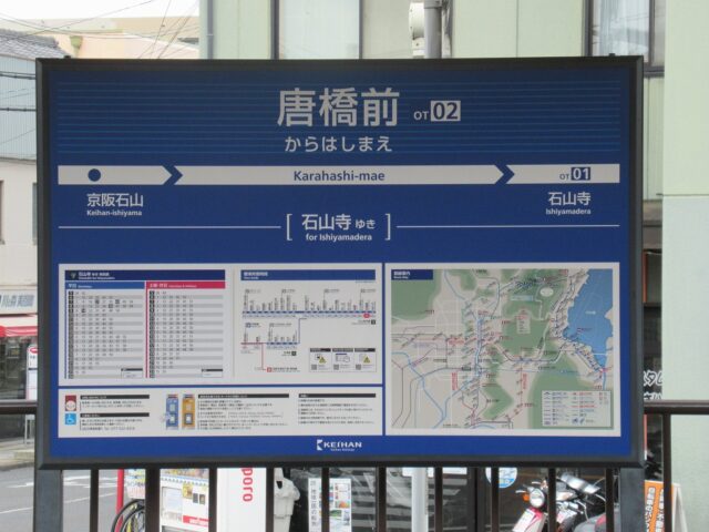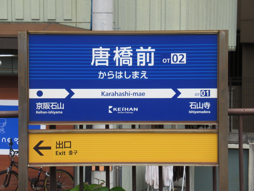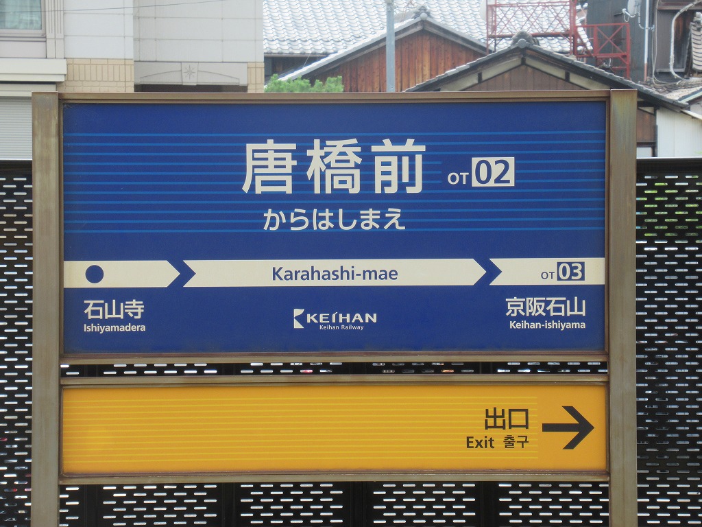 唐橋前駅 京阪石山坂本線の駅、唐橋前の改札画像です。 坂本比叡山口方面路線図入り駅名標、駅名は付近にある瀬田川にかかる橋の名前にちなむ。 坂本比叡山口方面駅名標 石山寺方面路線図入り駅名標 石山寺方面駅名標 駅舎、駅舎は坂本比叡山口方面ホームの先端に設けられている。 改札口、IC専用簡易改札が設置されている。また改札脇には自動券売機がある。 改札口には有人窓口跡のようなスペースが存在する。 ホームは相対式2面2線の地上ホームになっている。 駅舎から石山寺方面ホームへは構内踏切を渡りアクセスする。 ————————————— 所在地:滋賀県大津市 乗入路線 ■ 京阪石山坂本線