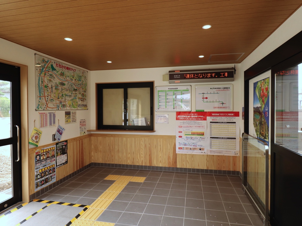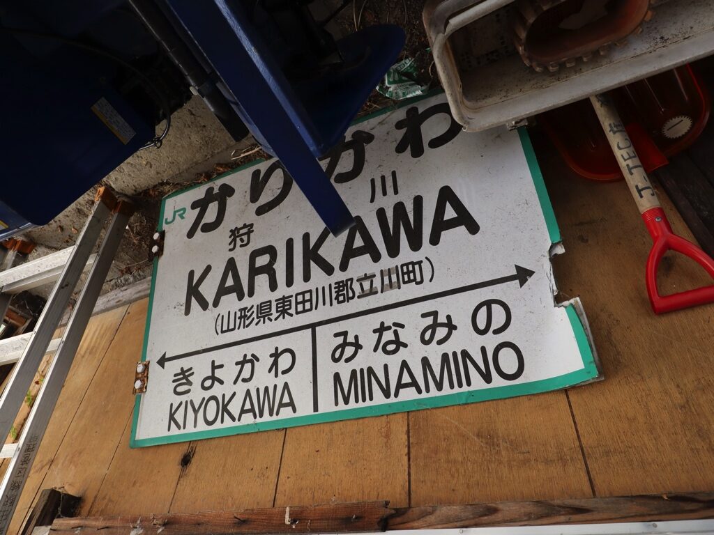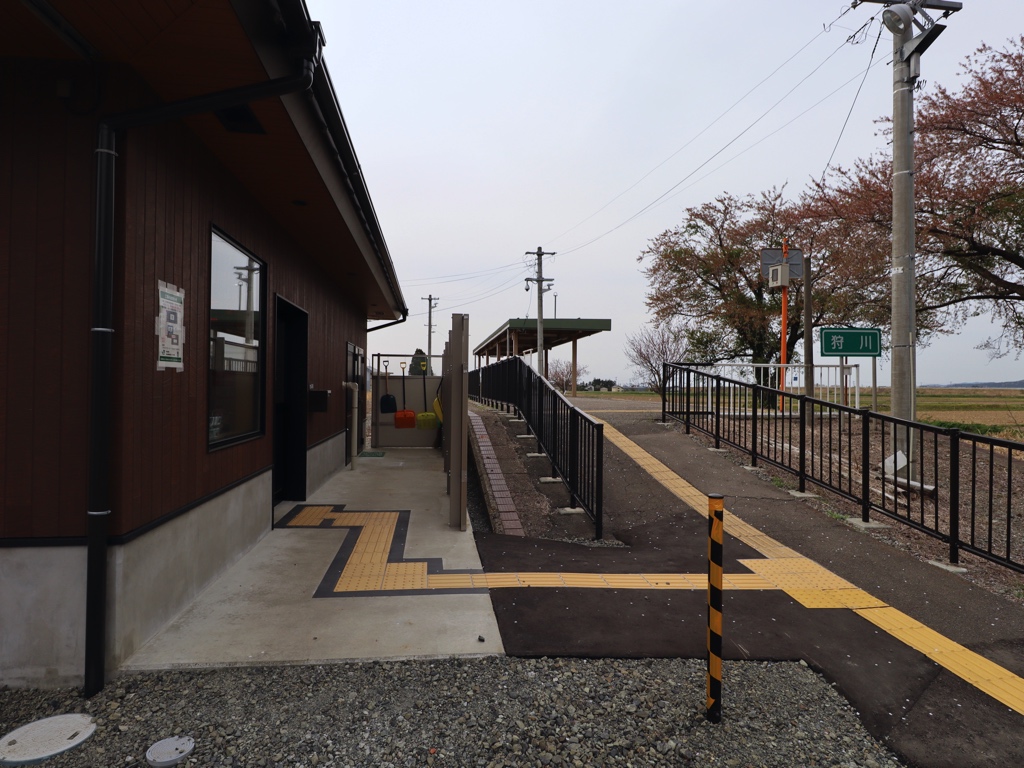 狩川駅 陸羽西線の駅、狩川の改札画像です。 駅名標、4ヶ国語対応となっている 旧駅舎時代、当駅駅舎の風除室内には以前設置されていたと思われる駅名標が置かれていた(2021年9月取材) 駅舎、2021年12月に使用開始された新しい駅舎となっている 駅舎内部は待合室となっている 当駅には簡易委託のきっぷうりばが設けられているが、窓口営業時間外は無人駅となる 旧駅舎、開業当時に建てられた100年以上の歴史を有する木造駅舎が長らく使用されてきたが、老朽化に伴い2022年に解体されてしまった(2021年9月取材) 旧駅舎時代の駅舎内部の様子、当駅では集改札業務は行われていなかった(2021年9月取材) 旧駅舎時代のきっぷうりばの様子、簡易委託の出札窓口は新駅舎でも営業を行なっている(2021年9月取材) 旧駅舎内に貼られていたたちかわ観光マップは新駅舎に移設されている 旧駅舎時代の待合室の様子(2021年9月取材) ホーム側から見た旧駅舎の様子(2021年9月取材) 旧駅舎時代、ホームと駅舎の間にはスペースが空いていた(2021年9月取材) 旧駅舎とホームの間のスペースには枕木が残っており、かつては線路がもう1線あったが、後に撤去されたことがわかる(2021年9月取材) 新駅舎はホームのすぐ横にあることから、かつて線路があった旧駅舎とホームの間のスペースに新駅舎が建てられたことがわかる ホームは単式1面1線の棒線駅であり、列車の行き違いは不可能である。前述の通り、旧駅舎時代はホームと駅舎の間に枕木が残されていたことから、かつては島式1面2線で列車交換が可能な構造であったことが推察される 広大に開けた庄内平野は風力発電の適地であることから、当駅付近には「新たちかわ風力発電所」があり、当駅ホームからも風車を見ることができる 当駅に進入する普通列車酒田行き、地域高規格道路「新庄酒田道路」の一部である国道47号高屋道路のトンネル建設工事に伴い、陸羽西線は2022年5月14日から列車の運行を休止していたが、2026年1月16日から約3年半ぶりに列車の運行が再開されることとなり、当駅にも再び列車が発着することになった ————————————— 所在地:山形県東田川郡庄内町 所属路線 ■ 陸羽西線(奥の細道最上川ライン)