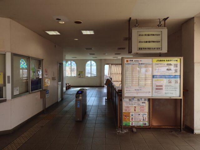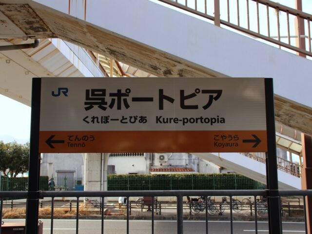 呉ポートピア駅 呉線の駅、呉ポートピアの改札画像です。 駅名標、当駅は「呉ポートピアランド」の開園に伴い1992年に開業した駅である 駅舎、橋上駅舎となっている 駅舎に続く歩道橋は国道31号を跨ぐように設置されている 改札口、当駅は無人駅となっており、交通系IC・きっぷ対応の簡易型自動改札機が設置されている 広島支社管内で設置例の見られる列車接近標が当駅にも設置されている 当駅には自動券売機が設置されており、かつての窓口跡が封鎖された状態で残る 駅舎内部は広々とした空間となっており、僅かながらベンチが設置されている 改札内コンコースにもベンチが設けられている ホームは単式1面1線の棒線駅となっており、列車の行き違いは不可能である 駅名の由来となった呉ポートピアランドは、スペインのリゾート地をモチーフとしたテーマパークであり、神戸ポートピアランドの運営主体である阪急電鉄株式会社や呉市が出資し、第三セクターとして1992年に開園した しかしながら、来園者の減少に伴い開園からわずか6年後の1998年に休園し、114億円の負債を抱え破綻した結果、現在は呉市の市民公園「呉ポートピアパーク」として無料開放されている ————————————— 所在地:広島県呉市 乗入路線 ■ 呉線