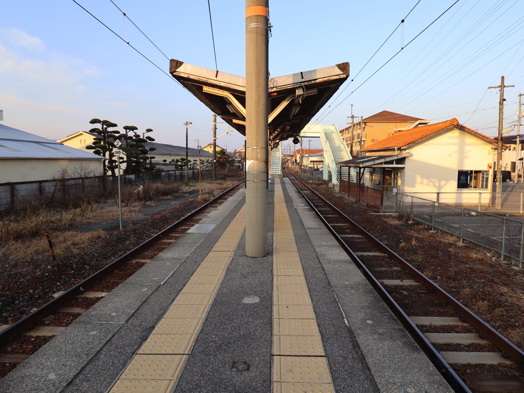 ホームは島式1面2線となっており、列車の行き違いが可能である。ホームの幅は非常に狭く、列車進入時は触車しないよう注意しよう