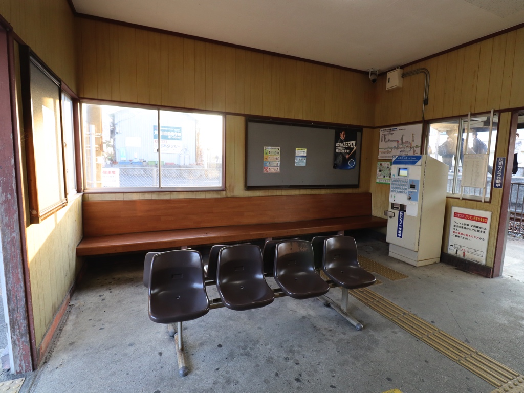 駅舎内部は小ぢんまりとした待合室となっている