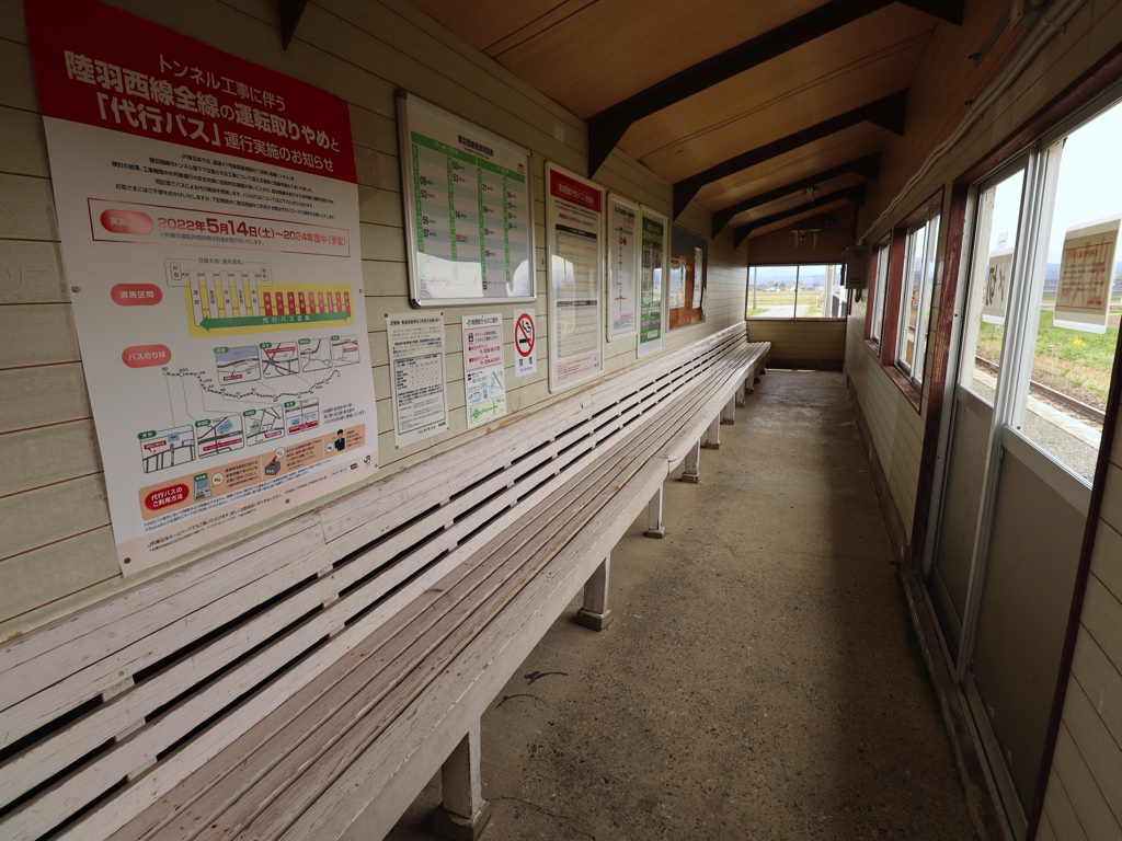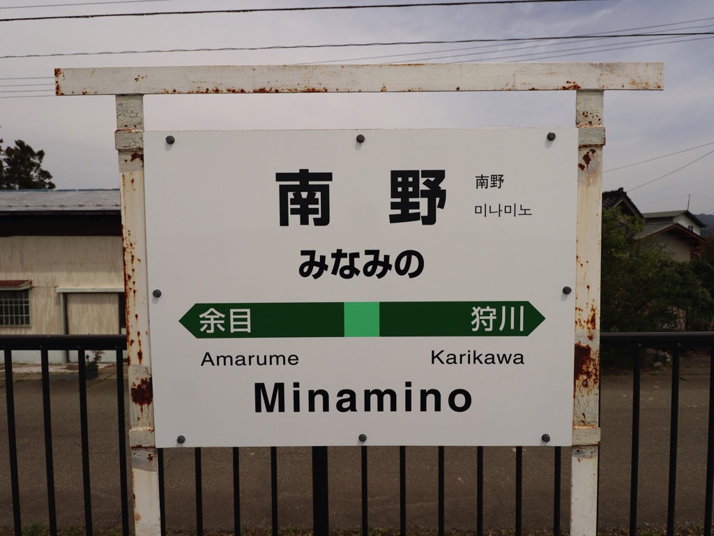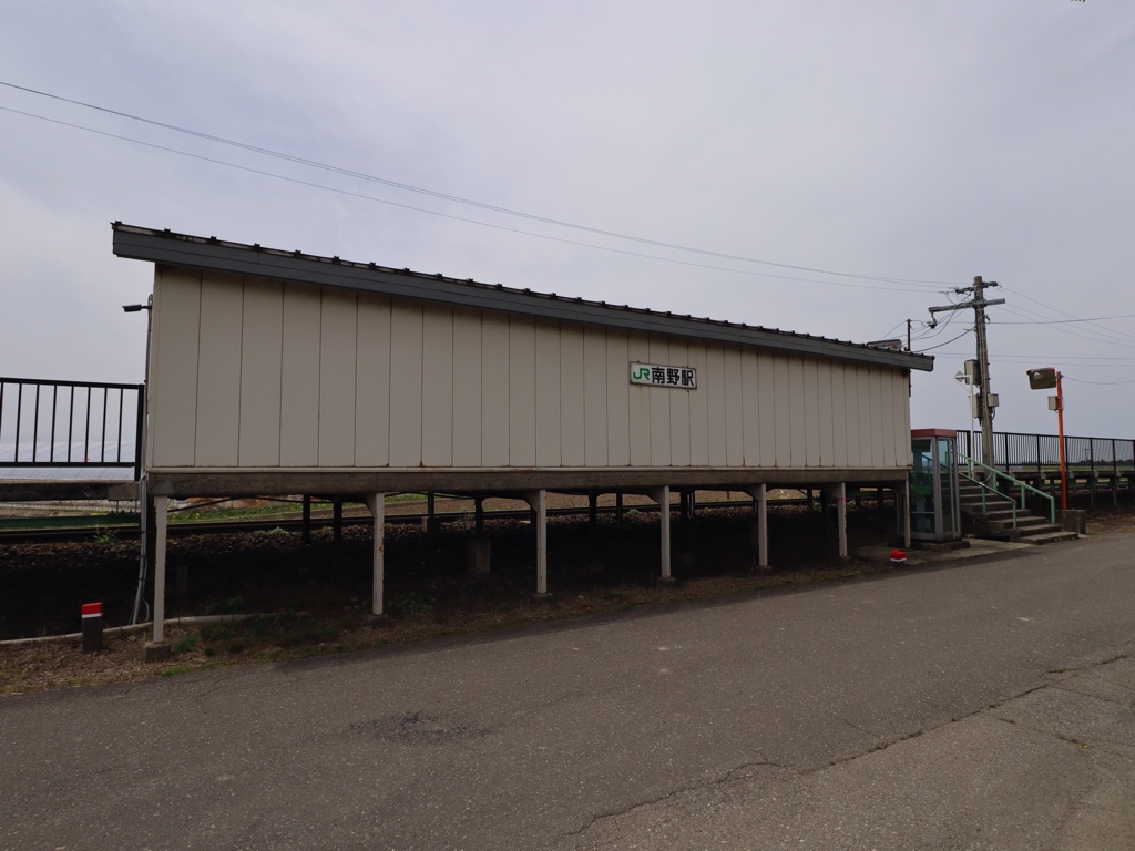 南野駅 陸羽西線の駅、南野の改札画像です。 駅名標、4ヶ国語対応となっている 4ヶ国語対応でない駅名標も設置されている 駅全景、当駅はホームと待合室があるのみの無人駅であり、駅舎および改札口は存在しない ホーム上に待合室が設置されている ホームは単式1面1線の棒線駅であり、列車の行き違いは不可能である 当駅ホーム上からは月山を望むことができる 当駅駅前に設置された駐輪場は木造の趣ある造りとなっている 当駅付近では車の転回は禁止されているため注意しよう ————————————— 所在地:山形県東田川郡庄内町 所属路線 ■ 陸羽西線(奥の細道最上川ライン)