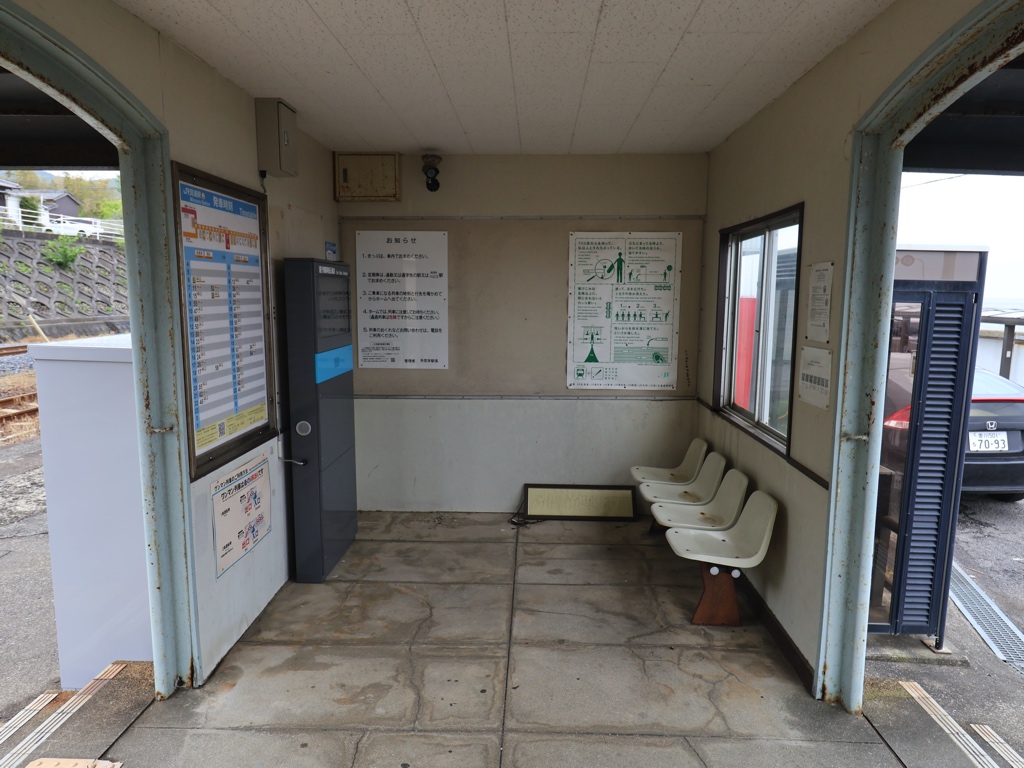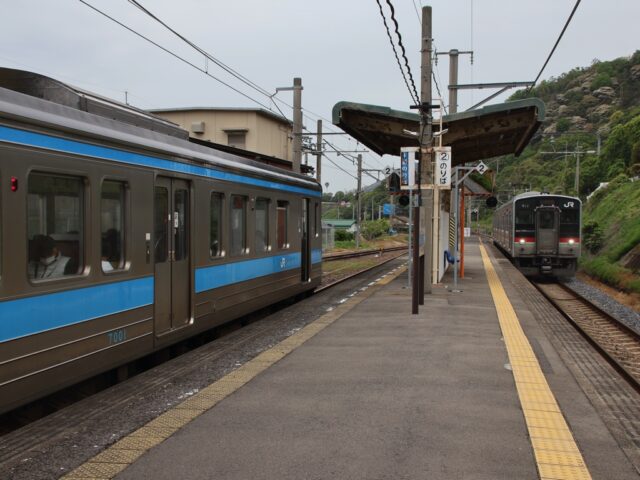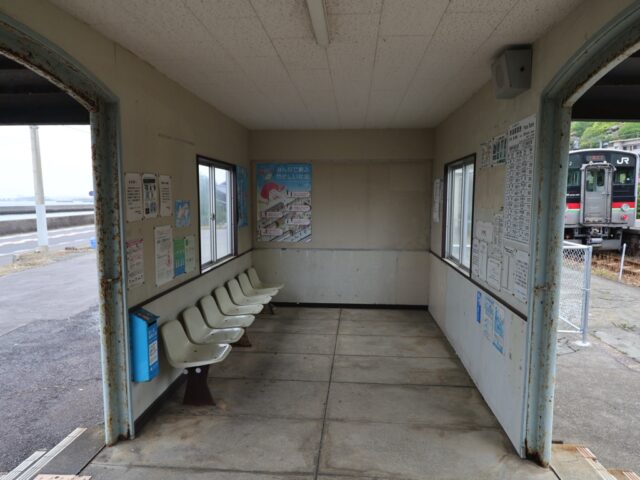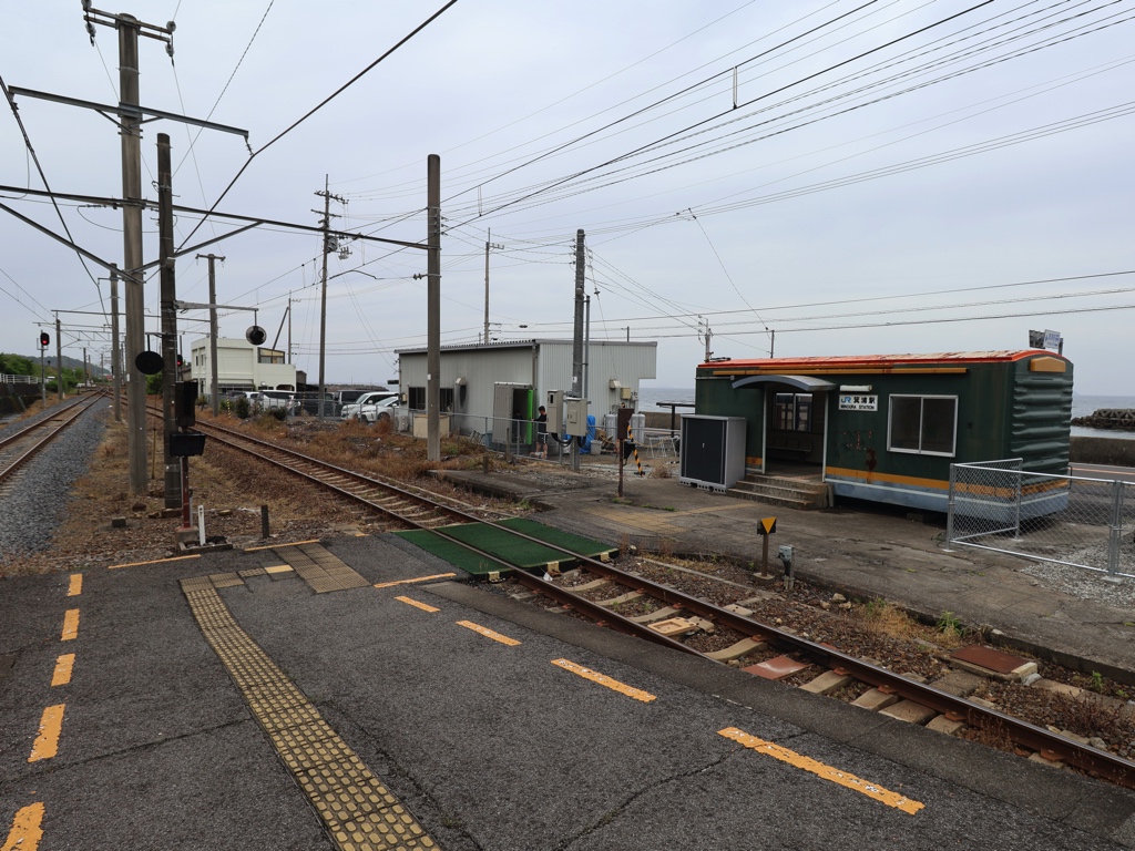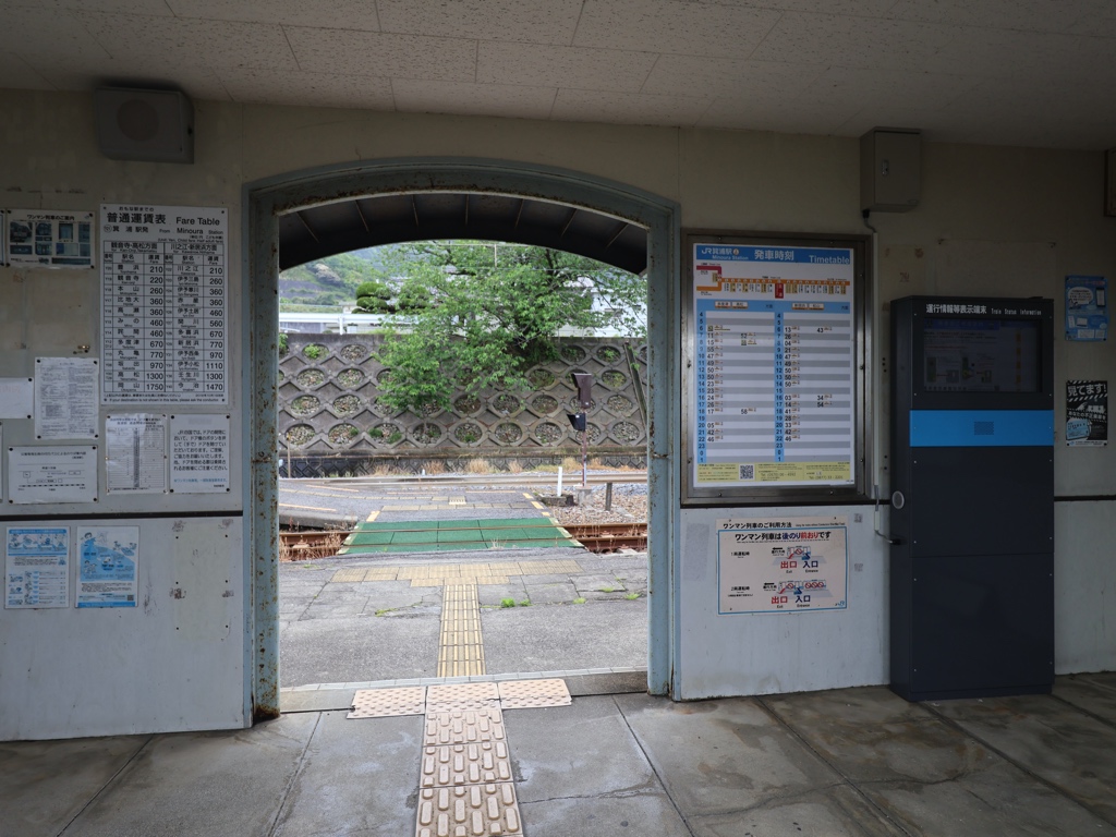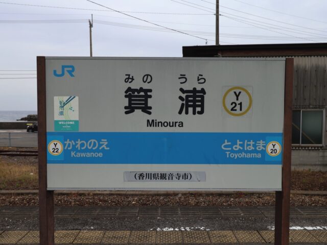 箕浦駅 予讃線の駅、箕浦の改札画像です。 駅名標、WELCOME香川県のロゴが入る。当駅は香川県最西端・最南端の駅であり、隣の川之江駅は愛媛県となる 駅名標 駅舎、当駅の駅舎はJR四国管内では数少ない、廃車体を転用した駅舎となっている 当駅は無人駅となっており、改札口は存在しない 駅舎内部は待合室となっている 駅舎内部の様子 駅舎からホームへは構内踏切を渡り移動する ホームは島式1面2線となっている 当駅では列車の交換が可能であり、しばしば列車の交換が行われる 手書きと思われる番線標が設置されていた 手書きと思われる番線標 当駅の駅前には国道11号線が通っており、その先には瀬戸内海が広がっている。なお当駅の横にはうどん店があり、地元でも人気の有名店として知られる 当駅駅前には白ポストが設置されており、悪書追放に熱心な土地柄が垣間見える ————————————————— 所在地:香川県観音寺市 乗入路線 ■ 予讃線