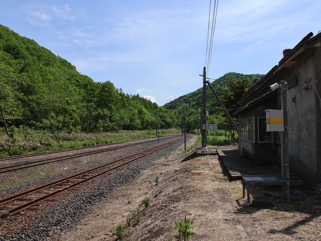 中越駅 石北本線の駅、中越の廃駅画像です。 駅舎、当駅は利用者僅少により、2001年に旅客駅としては廃止となった。旅客駅であった当時の駅舎は赤いトタン屋根が特徴的な木造駅舎であり、取材当時も保線基地として使用されていた。 線路側から見た駅舎の様子(列車車内より撮影) 廃止後の駅構内の様子、廃止後ホームや駅名標は撤去され、ここがかつて旅客駅であったことを示すものは何も残っていない 当駅は旅客駅としては廃止されたが、現在も「中越信号場」として、石北本線の運行の安全を支える存在となっている 石北本線の上川ー白滝間は37.3km離れており、全国の在来線で駅間の距離が最も長い区間であるが、当駅はこの駅間に3つある信号場の1つであり、最も旭川寄りにある信号場である かつて、石狩国と北見国の境であり、現在も険しい峠が立ちはだかる北見峠越えの区間に位置する当駅。周囲には人家は皆無であり、駅前の国道333号を時折車が通過するのみである 人の営みが消えても、現在も鉄路の安全を守る重要な存在であることには変わりない ————————————— 所在地:北海道上川郡上川町 乗入路線 ■ 石北本線