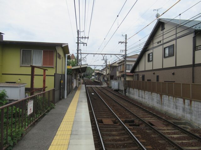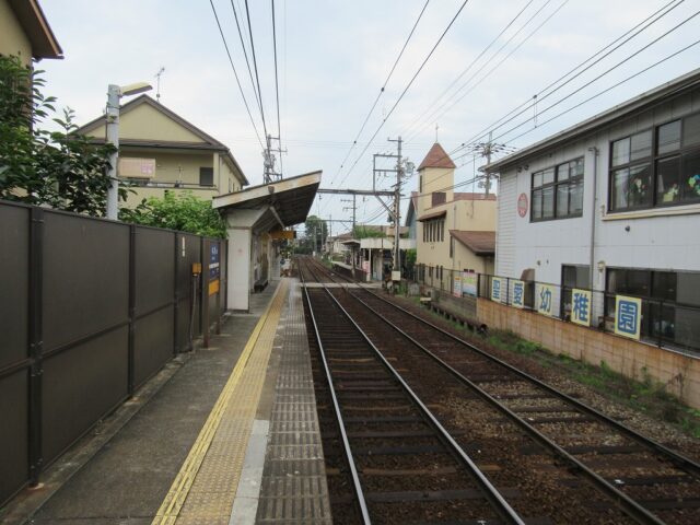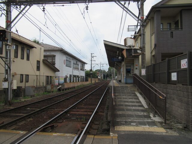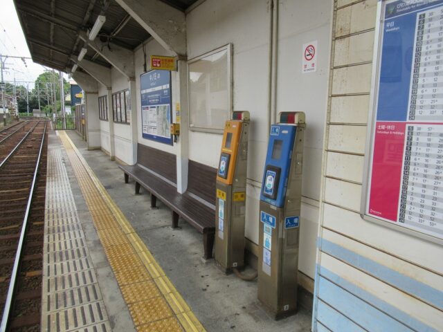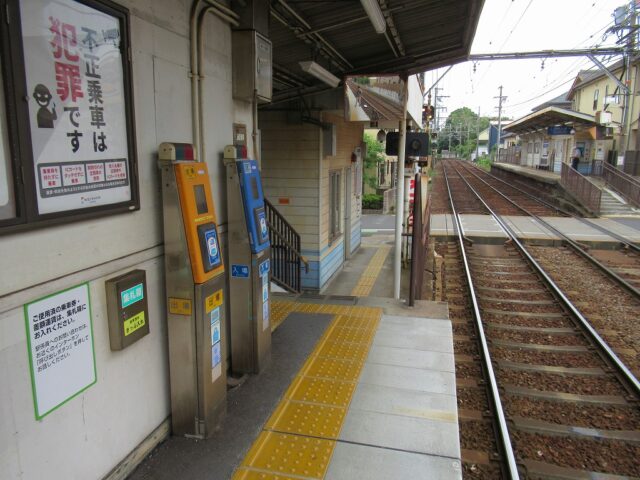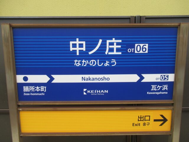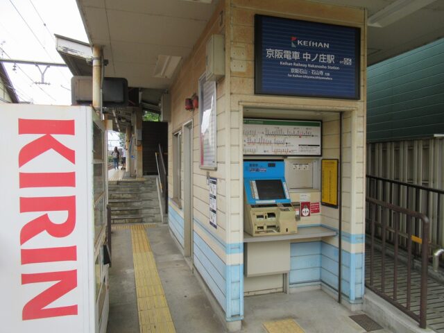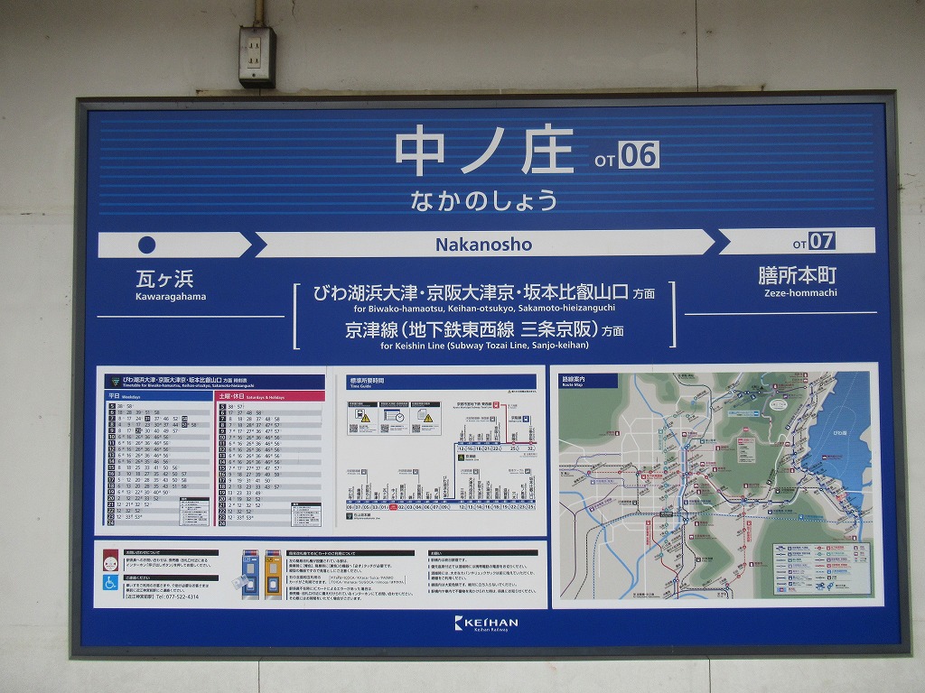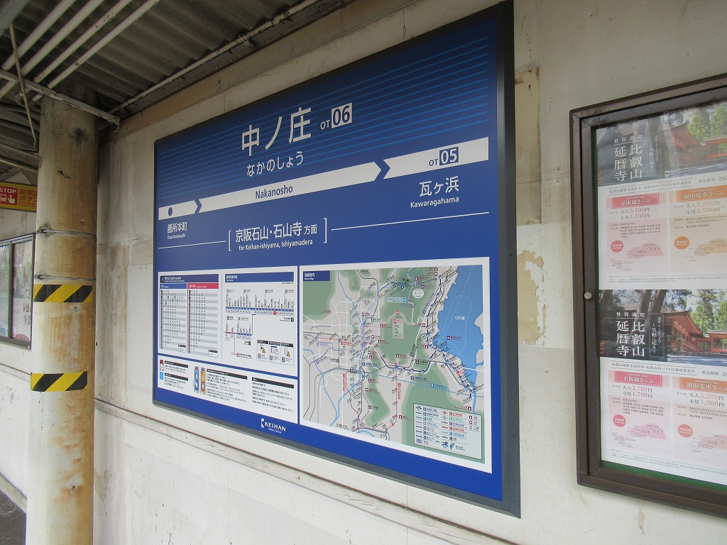 中ノ庄駅 京阪石山坂本線の駅、中ノ庄の改札画像です。 坂本比叡山口方面路線図入り駅名標 坂本比叡山口方面駅名標 石山寺方面路線図入り駅名標 石山寺方面駅名標 坂本比叡山口方面駅入口、駅舎は無くダイレクトにホームにアクセスする構造になっている。 坂本比叡山口方面改札口、IC専用簡易改札機がホーム上に設置されている。 坂本比叡山口方面ホーム、千鳥配置型の相対式2面2線となっている。またホーム上に自動券売機が設置されている。 石山寺方面駅舎、石山寺方面にのみ駅舎がある。 石山寺方面改札口、IC専用簡易改札機がホーム上に設置されている。 駅舎内には自動券売機が設置されている。 駅舎内には有人駅時代の有人改札跡が残っている。 石山寺方面ホーム、千鳥配置型の相対式2面2線となっている。いる。 坂本比叡山口ホームから見た石山寺方面ホームの様子、ホーム間の移動は付近の踏切を使い移動する。 ————————————— 所在地:滋賀県大津市 乗入路線 ■ 京阪石山坂本線