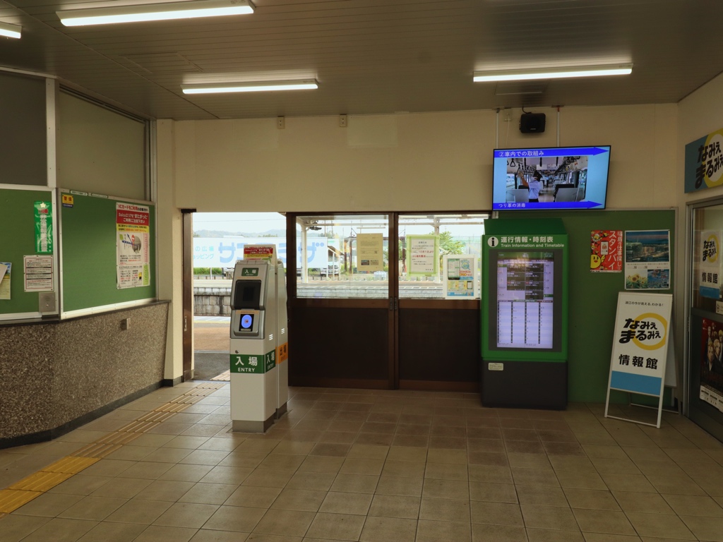 浪江駅 常磐線の駅、浪江の改札画像です。 駅名標、当駅には仙台発着の特急「ひたち」号の全列車が停車する 駅舎、国鉄時代に建てられた鉄筋コンクリート造りの駅舎となっている 駅舎には国鉄の趣が感じられる駅名標が取り付けられている 改札口、当駅は無人駅となっており、IC専用簡易改札機が設置されている。当駅はSuica「首都圏エリア」最北端の駅であり、いわき方面のみ交通系ICが利用できる。原ノ町駅・仙台駅等「仙台エリア」の駅へ交通系IC利用はできないため注意しよう 出場側から見た改札口の様子、無人駅ながら自動精算機も設置されている きっぷうりばの様子、当駅には指定席券売機・自動券売機が設置されている 駅舎内部は待合室となっているほか、浪江町の広報施設である「なみえまるみえ情報館」が駅舎内に設けられている ホームは2面3線となっており、列車の行き違いが可能である 当駅の跨線橋は「左側通行」と定められているため駅利用時は注意しよう 当駅構内ではJR東日本が保有する遊休施設を活用したエビの養殖が行われている ————————————— 所在地:福島県双葉郡浪江町 乗入路線 ■ 常磐線