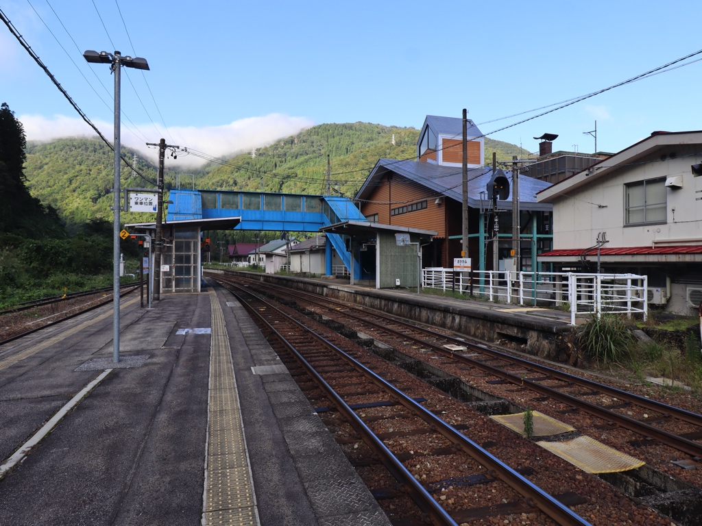 駅名標、当駅は飛騨市宮川地区(旧宮川村)の玄関駅で、当駅止まりの列車も存在する。