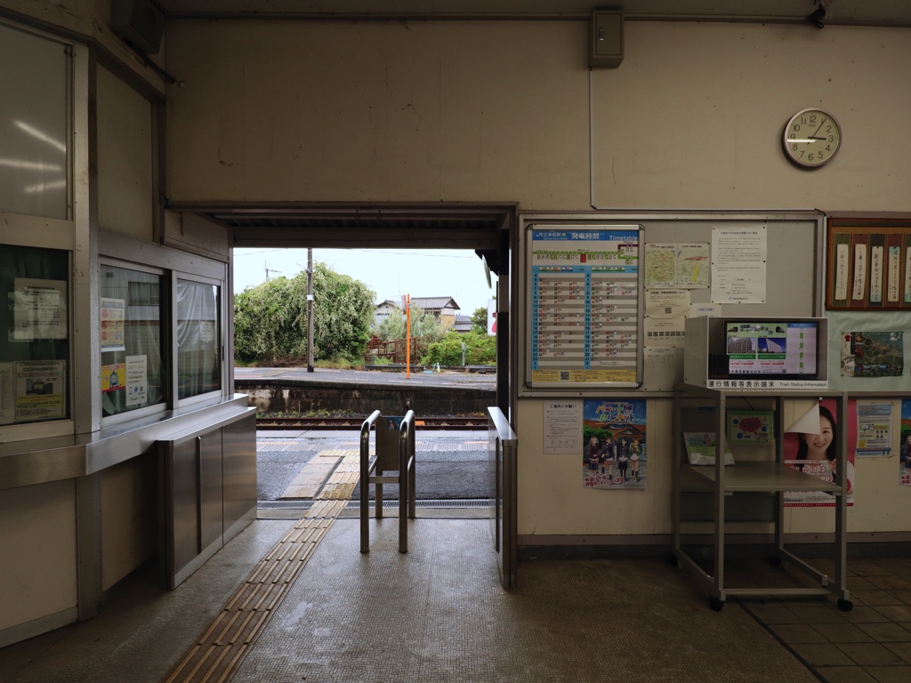 改札口、当駅は有人駅であり、係員による集改札が行われる