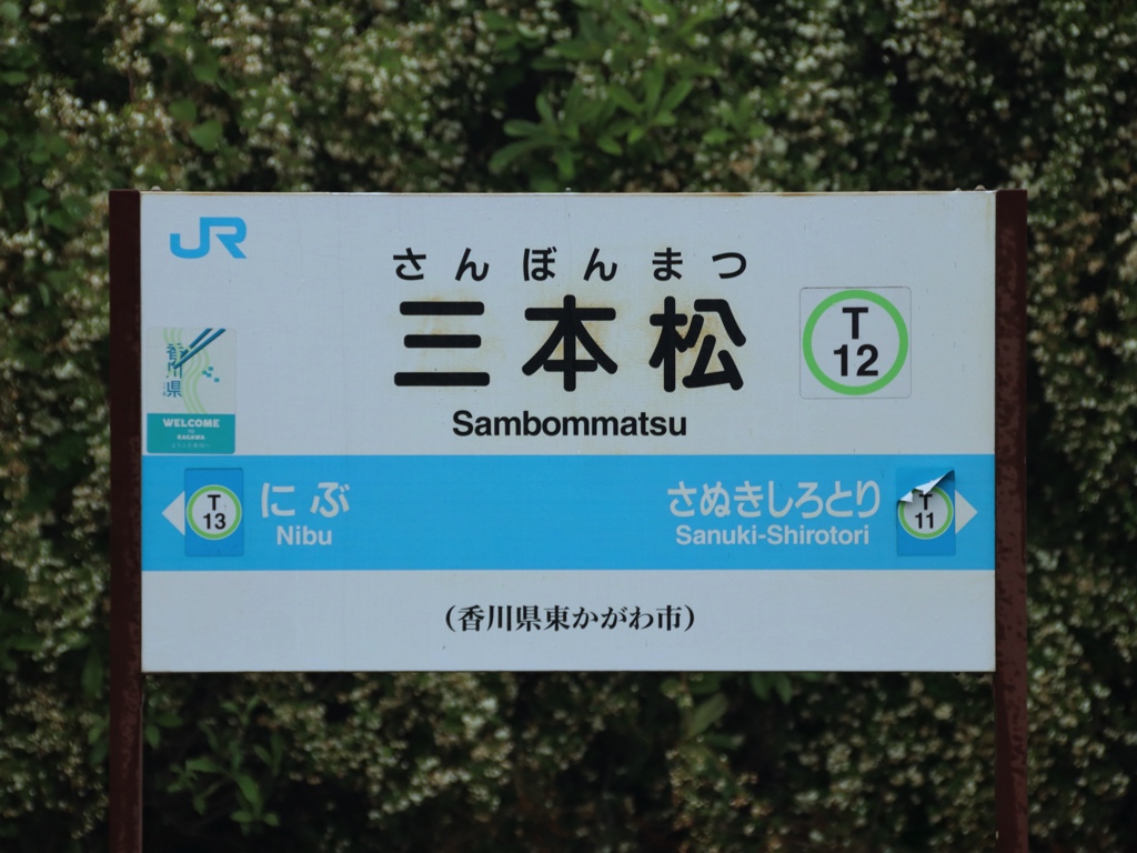 駅名標、当駅には特急「うずしお」号が停車するほか、当駅始発・終着となる普通列車が存在する
