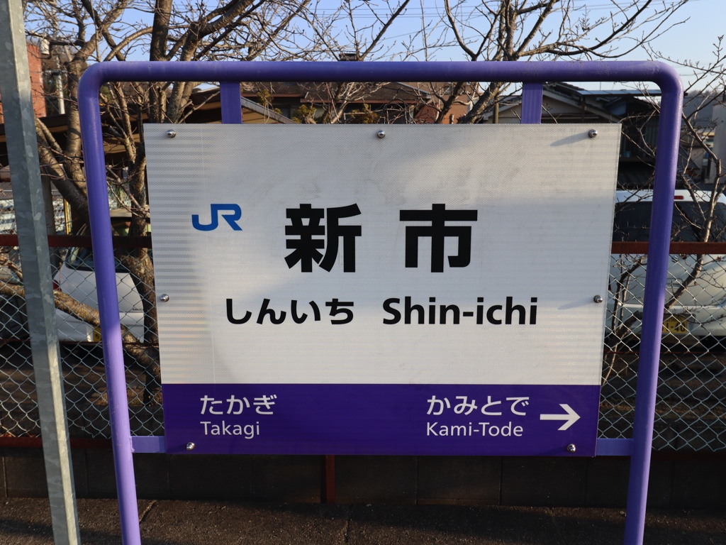 新市駅 福塩線の駅、新市の改札画像です。 駅名標 駅舎、赤い瓦屋根が特徴的な木造駅舎となっている 駅舎に取り付けられた駅名標からは国鉄の趣が感じられる 当駅は無人駅となっており、改札口は存在しない かつての窓口跡は封鎖されている 駅舎内部は待合室となっている 駅舎からホームへは階段を上がって連絡する ホームは相対式2面2線であり、列車の行き違いが可能である 当駅のホーム上屋は木造の趣ある造りとなっている 当駅の木造ホーム上屋は趣深い ホーム上屋には木製・手書きの方面看板が残っていた 府中方面にも鉄板の手書き方面看板が残っていた 当駅の便所も趣ある造りであり、使用には勇気が要りそうだ 当駅駅前には白ポストが設置されており、悪書追放に熱心な土地柄が垣間見える 駅舎ホーム側には花が生けられていた 当駅は備後一宮である吉備津神社の下車駅とされている 当駅構内には「安全第一」の看板が残っていた ————————————— 所在地:広島県福山市 乗入路線 ■ 福塩線