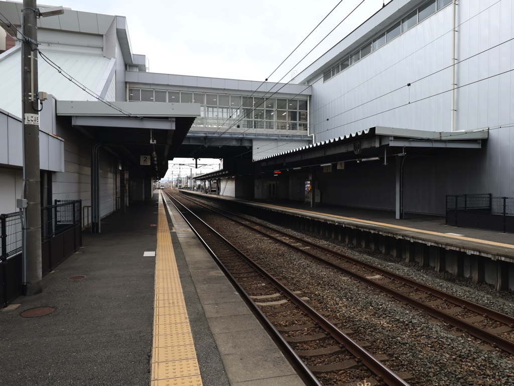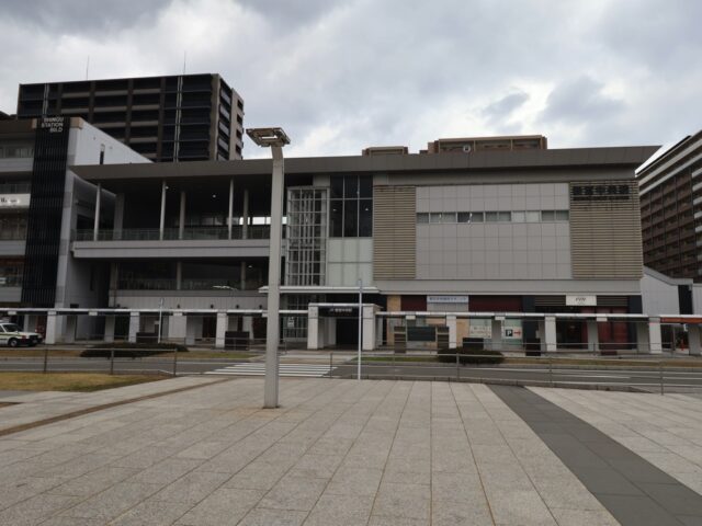 東口駅舎、東西自由通路を併設した橋上駅舎となっている