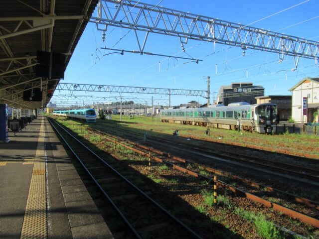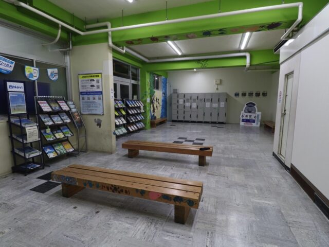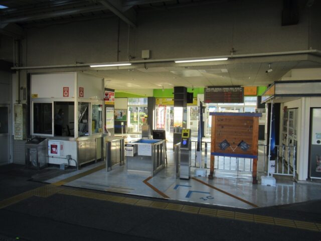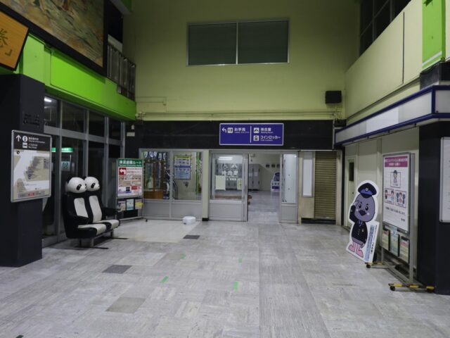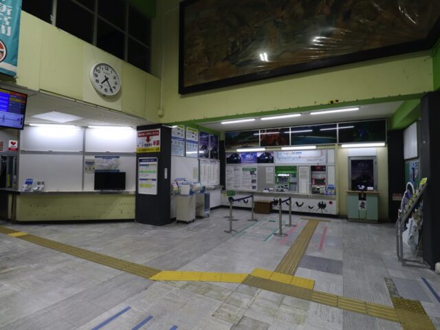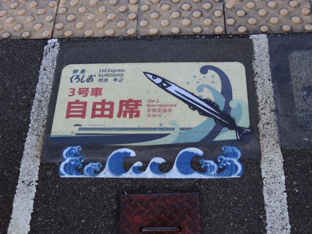 新宮駅 紀勢本線の駅、新宮の改札画像です。 駅名標、当駅は紀勢本線における拠点駅の1つであり、当駅以西はJR西日本管轄で直流電化されているが、当駅より東はJR東海管轄で非電化区間となる。また、当駅は和歌山県最東端の駅でもあり、隣の鵜殿駅は三重県となる 駅舎、ガラス張りの外観が特徴的な鉄筋コンクリート造りの駅舎となっている。駅前にはヤシの木が植わっており南国情緒が感じられる 改札口、当駅は有人駅であり、交通系IC専用の簡易型自動改札機が設置されている。なお、交通系ICはJR西日本管内である紀伊田辺・和歌山方面でのみ利用可能であり、JR東海管内の熊野市・尾鷲方面では利用できない 出場側から見た改札口の様子 きっぷうりばの様子、当駅にはみどりの券売機プラスおよび自動券売機が設置されている。かつてはみどりの窓口も設けられていたが近年の合理化に伴い閉鎖された 駅舎内部の様子 駅舎内部には待合室が設けられている ホームは2面3線となっており、列車の行き違い・折り返しが可能となっている。大阪方面の特急「くろしお」号および普通列車は全列車が当駅始発・終着となるが、名古屋方面の特急「南紀」号は1往復のみ当駅始発・終着であり、その他は紀伊勝浦駅発着となる 当駅構内は留置線が多数設置されているため広くなっている ホーム同士の行き来は地下通路にて行う 地下通路内部の様子、熊野信仰のシンボルとされる「八咫烏(やたがらす)」が描かれている 松阪・名古屋方面の特急「南紀」号は3番のりばから発着する 特急「南紀」号の足元乗車位置、「南紀」号は名古屋から当駅・紀伊勝浦を結ぶ特急列車である 「くろしお」号の足元乗車位置、ヘッドマークをモチーフとしたデザインとなっており、新宮特産の「さんま寿司」にちなみ秋刀魚のイラストが入る ホーム上には安全塔が設置されていた、これからも鉄道の安全が未来永劫守られることを願うばかりである ————————————— 所在地:和歌山県新宮市 乗入路線 ■ 紀勢本線(きのくに線) ■ 紀勢本線