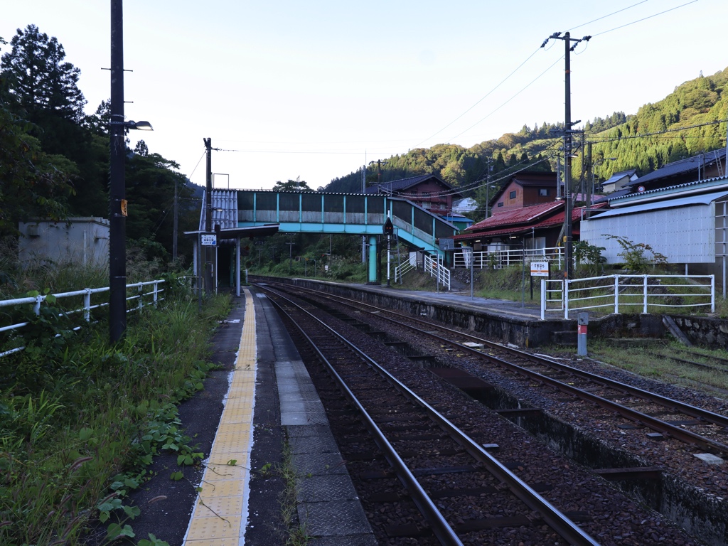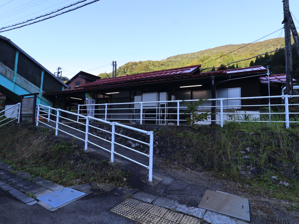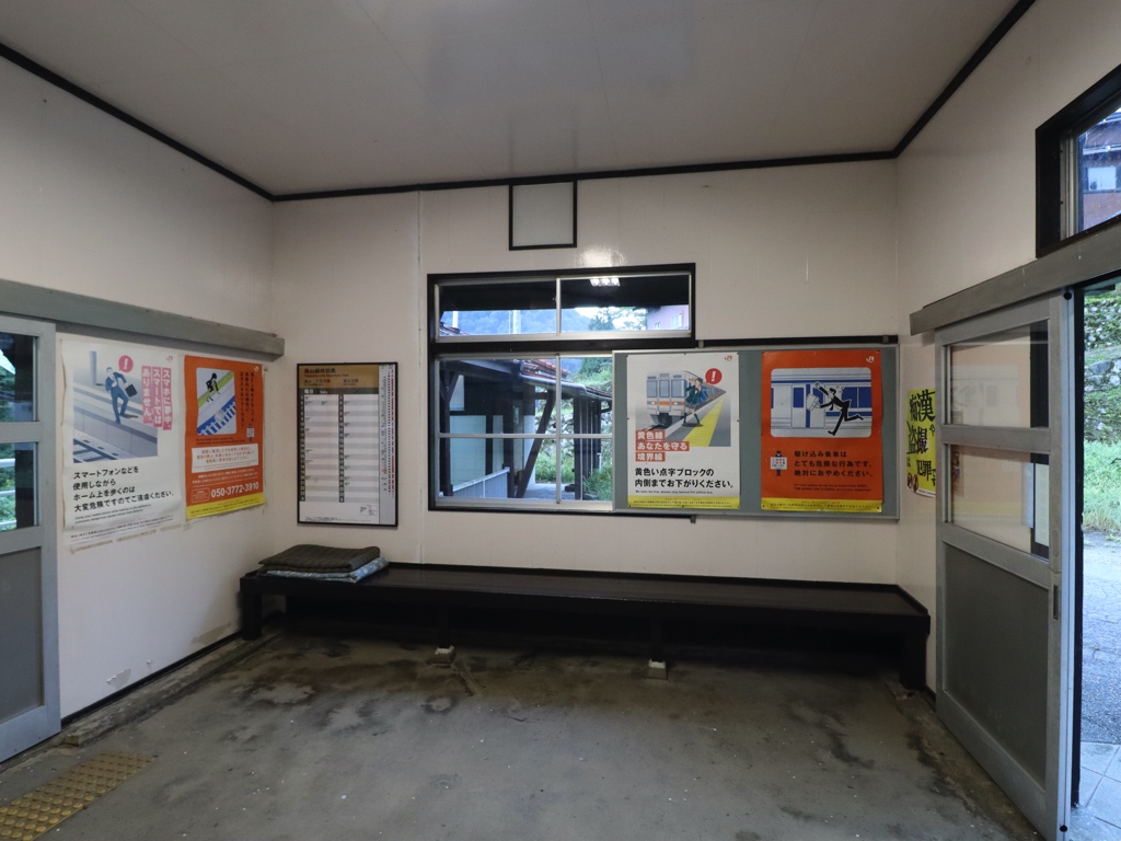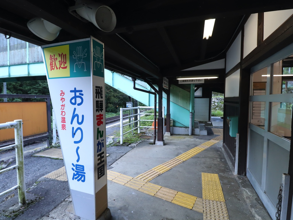 杉原駅 高山本線の駅、杉原の改札画像です。 駅名標、当駅は岐阜県最北端の駅かつJR東海最北端の駅であり、隣の猪谷駅は富山県の駅かつJR西日本管轄となる 駅舎、赤いトタン屋根が特徴的な木造駅舎は飛越線の駅として開業した1932年当時から残る駅舎である 駅舎には木製・手書きの駅名標が取り付けられていた 当駅は無人駅となっており、改札口は存在しない 駅舎ホーム側には集札箱が取り付けられている 当駅の海抜は312mあり、高山本線起点の岐阜駅からは180.4kmの場所に位置する かつての窓口跡は封鎖されている 駅舎内部は待合室となっている 高山・岐阜方面ホームへは跨線橋を渡る必要がある 手書きと思われるハシカンが残っていた 猪谷・富山方面ホームへは駅舎からスロープを下るとたどり着く ホームは相対式2面2線であり、列車の行き違いが可能である 当駅の便所は老朽化のため封鎖されているため列車内の綺麗なトイレを利用しよう 閉鎖された便所内には不要となった便所看板が放置されていた 駅舎軒下には「おんり〜湯」「飛騨まんが王国」の歓迎看板が設置されていた 飛騨まんが王国は当駅から徒歩5分の場所に位置する ————————————————— 所在地:岐阜県飛騨市 乗入路線 ■ 高山本線