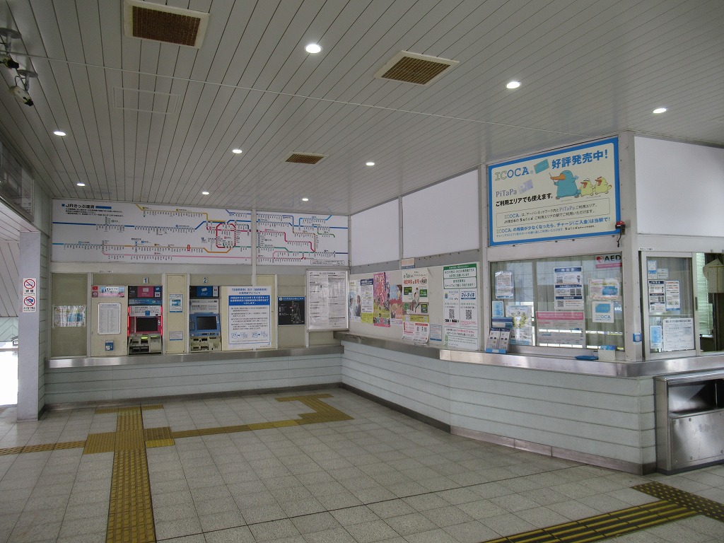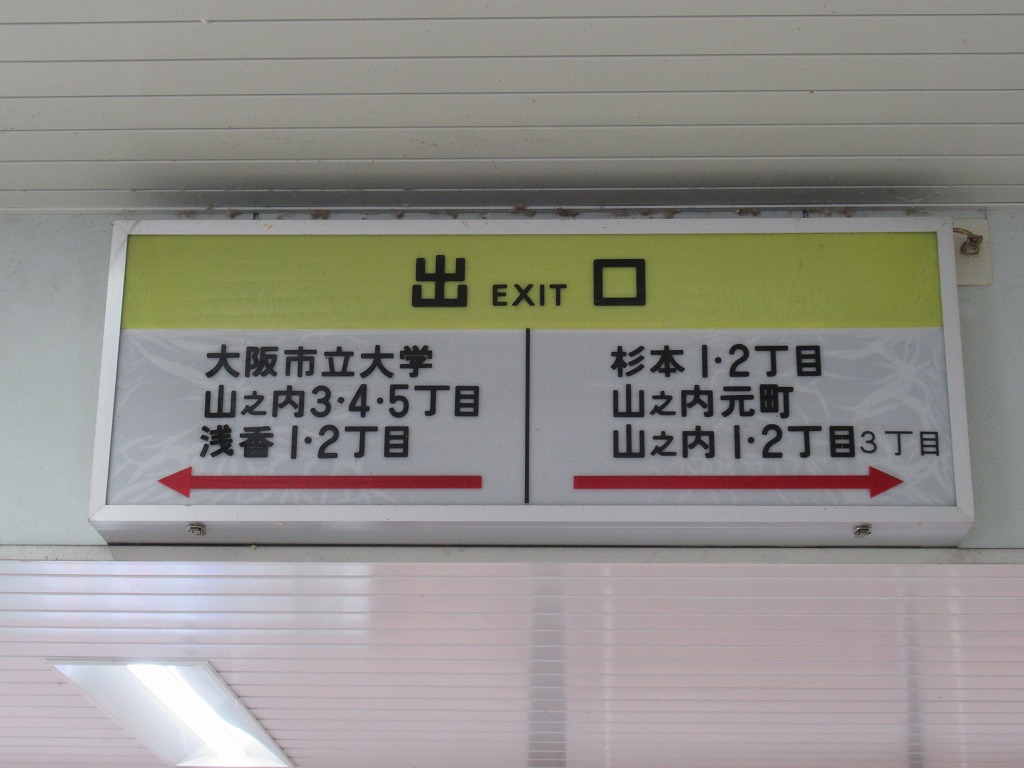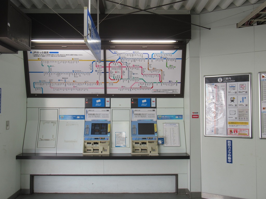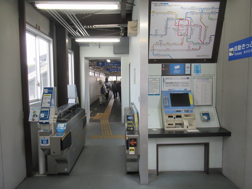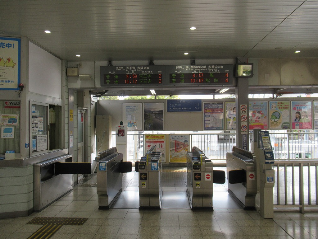 杉本町駅 阪和線の駅、杉本町の改札画像です。 駅名標、「大阪市立大学前」の副駅名がつけられている。またかつては当駅折り返しの普通列車も存在していた。 自立式駅名標、当駅はかつては関西本線・八尾駅が起点で伸びていた阪和貨物線の終点駅であり、2009年に廃線になるまでは阪和線・関西本線を結ぶ短絡線の接続駅としても機能していた。 西口駅舎、西口は橋上駅舎になっている。 西口駅舎・階段側を撮影 駅舎には立体文字の第1種駅名標が取り付けられている。 西口改札、自動改札機が3通路設置されている。 以前はみどりの窓口が設置されていたが現在は廃止されている。 西口駅舎内には2台の自動券売機が設置されている。またかつての窓口跡は閉鎖されている。 西口駅舎内には国鉄時代から残ると思われる「出口」看板が残っている。 また駅舎内の柱にはひらがな表記の縦型駅名標もある。 西口エレベータ改札、跨線橋直結の改札となっている。 東口駅舎、東口は地平駅舎になっている。 東口改札、自動改札機が3通路接された無人改札になっている。 東口にも2台の自動券売機が設置されている。 ホームは島式2面4線のホームになっているが、柵がされており実質2線しか乗降できるホームはない。 天王寺方面通過ホームの1番のりばの番線標は国鉄時代に設置された行灯タイプとなっている。 天王寺方面乗降ホームの2番のりばの番線標も国鉄時代に設置された行灯タイプとなっている。 和歌山方面通過ホームの3番のりばの番線標も国鉄時代に設置された行灯タイプとなっている。 和歌山方面乗降ホームの3番のりばの番線標も国鉄時代に設置された行灯タイプとなっている。 天王寺方面ホームには注意書きの手書き看板が掲げられている。 当駅の跨線橋は木造のは跨線橋となっており、大阪市内の駅では歴史ある貴重な構造物となっている。 ————————————— 所在地:大阪市住吉区 乗入路線 ■ 阪和線