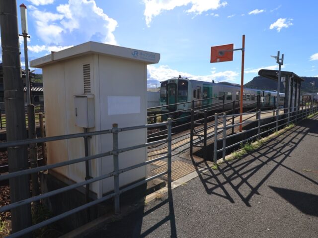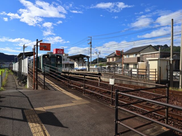 屋島駅 高徳線の駅、屋島の改札画像です。 駅名標、当駅には特急「うずしお」号の全列車が停車する 新しいタイプの駅名標も設置されている フォントの異なるタイプの駅名標も設置されている 当駅設置の名所案内、駅名の由来は古戦場でもある「屋島」であり、当駅および琴電屋島駅からバスでの連絡となる ホーム上には屋島の下車駅であることを示す碑も設置されている 屋島への歓迎看板も設置されている 駅舎、緑色の外観が特徴的な木造駅舎であり、駅前には駅名を記載した石碑も建つ 改札口、IC専用簡易改札機が設置されている ホーム側から見た改札口の様子 駅舎内には観光案内所およびきっぷうりばが設けられている 駅舎内部は待合室となっている 駅前には白ポストも設置されており、悪書追放に熱心な土地柄であることが垣間見える ホームは2面3線となっており、列車の行き違いが可能である ホーム上にも出場用のみIC専用簡易改札機が設置されている ————————————— 所在地:香川県高松市 乗入路線 ■ 高徳線
