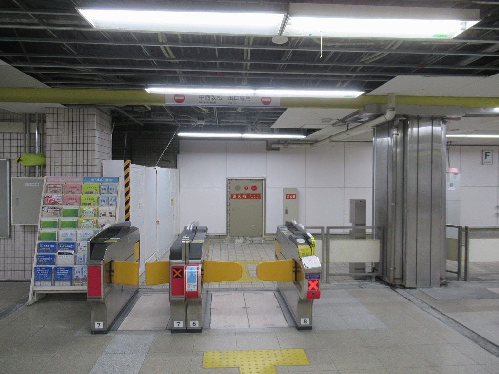 地下鉄谷町線と千日前線の駅、谷町九丁目の改札画像です。