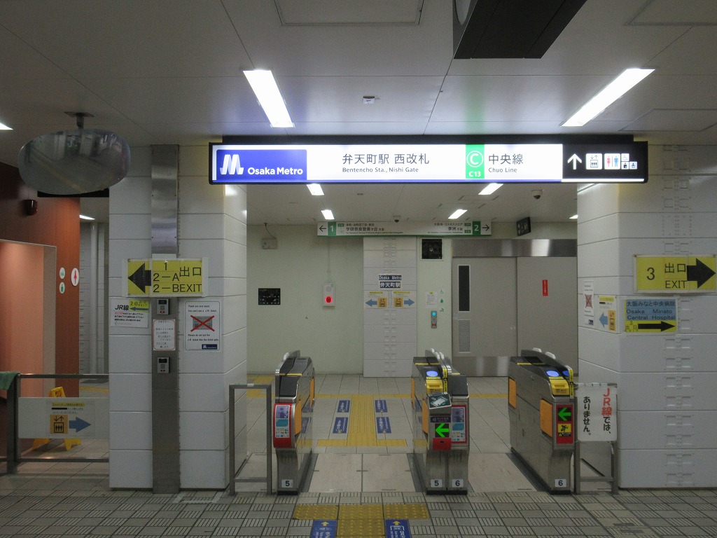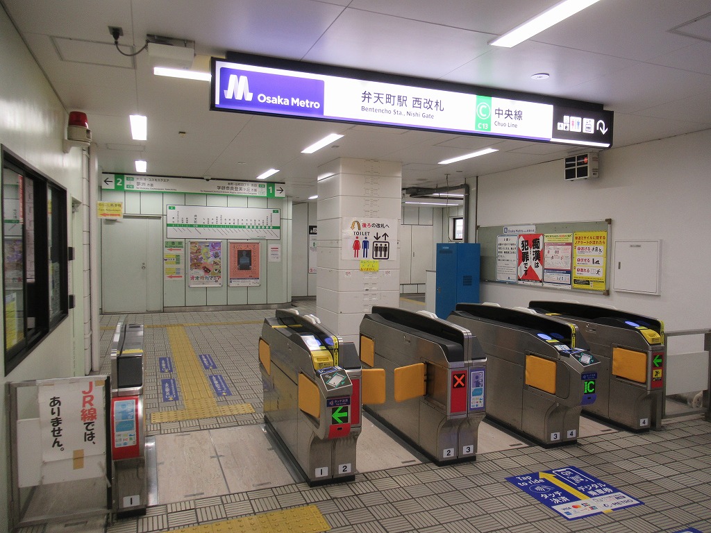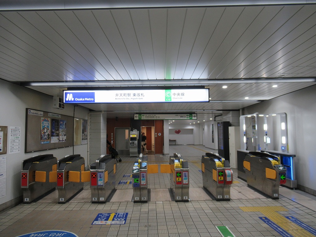 大阪環状線と地下鉄中央線の駅、弁天町の改札画像です。