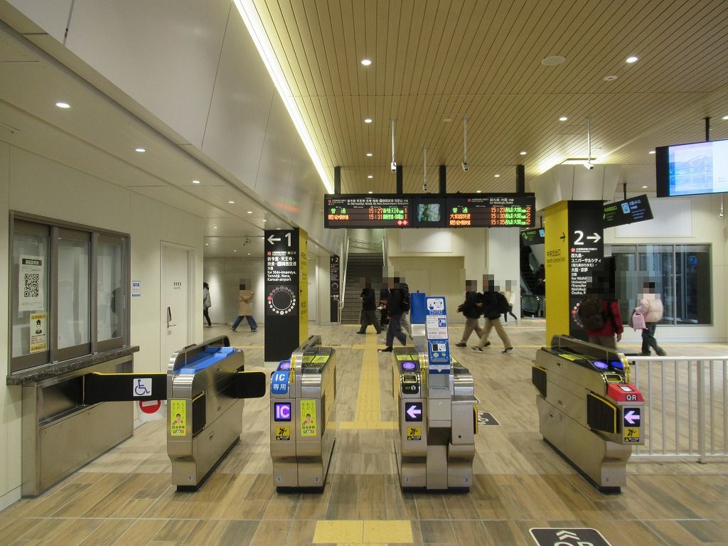 大阪環状線と桜島線と阪神なんば線の駅、西九条の改札画像です。