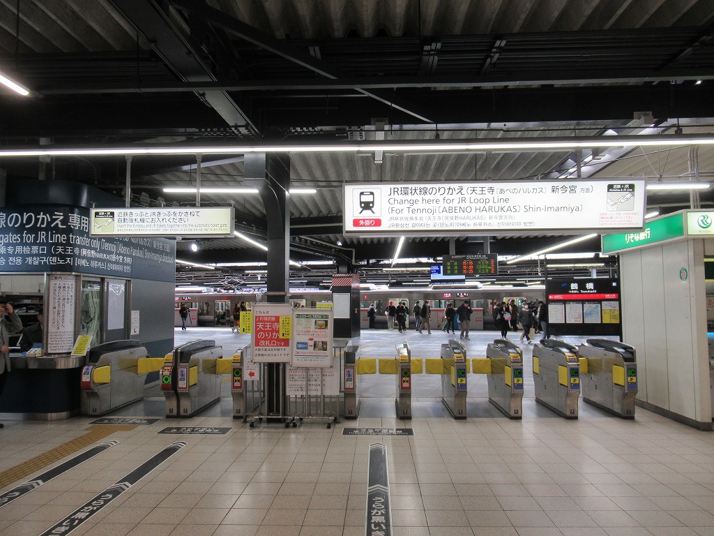 大阪環状線・近鉄線・地下鉄千日前線の駅、鶴橋の改札画像です。