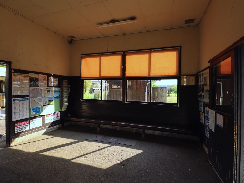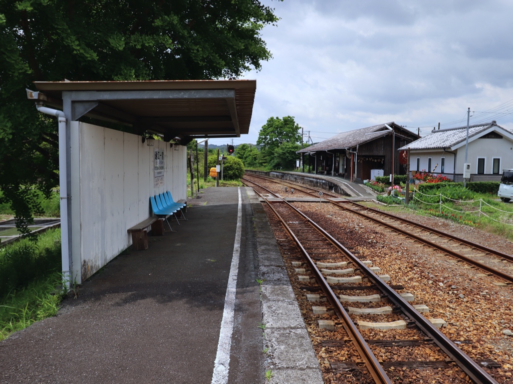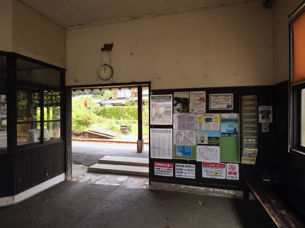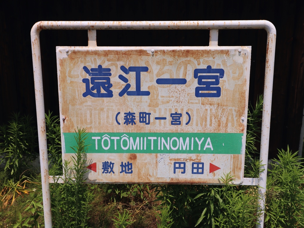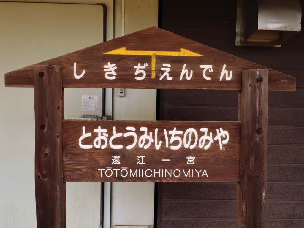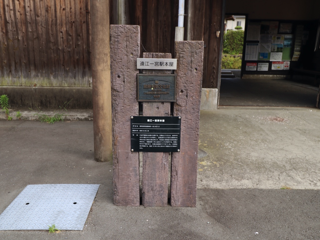 遠江一宮駅 天竜浜名湖鉄道の駅、遠江一宮の改札画像です。 駅名標、国鉄風のデザインとなっている 天竜浜名湖鉄道への転換直後に設置されたと思われる駅名標、国鉄時代に設置されていた駅名標を転用したものと思われ、国鉄駅名標の表記が透けて見えている 別様式の駅名標も設置されている 案内看板風の駅名標も設置されている 当駅にはホーロー縦型駅名標も設置されており、当駅には5種類の駅名標が設置されていることになる 駅舎、開業当時からの木造駅舎が使用されている 当駅の駅舎は国の登録有形文化財に指定されている 当駅は無人駅となっており、改札口は存在しない かつての駅事務室跡のスペースには蕎麦屋が入店している。蕎麦屋は地元でも評判の人気店であり、営業時間帯には多くの人が訪れる 駅舎内部は待合室となっており、蕎麦屋の営業時間帯は蕎麦屋の入店待ちスペースとしても利用されている ホームは千鳥配置の相対式2面2線であり、列車の行き違いが可能である ホーム同士の行き来は構内踏切にて行う 遠州森・掛川方面の列車は駅舎側ホームから発着し、天竜二俣・西鹿島方面の列車は駅舎反対側ホームから発着する ————————————— 所在地:静岡県周智郡森町 乗入路線 ■ 天竜浜名湖鉄道