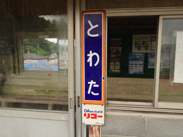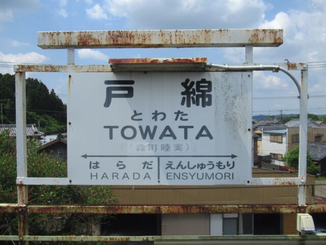 戸綿駅 天竜浜名湖鉄道の駅、戸綿の改札画像です。 駅名標 当駅にはホーロー縦型駅名標が設置されていた 駅全景、当駅は盛り土上にホームのある無人駅であり、駅舎および改札口は存在しない。ホームへは長い階段を上がる必要がある ホームへの階段には途中踊り場のような箇所があり、かつてはここに改札口があったのかもしれない 待合室はホーム上に設けられている ホームは単式1面1線の棒線駅であり、列車の行き違いは不可能である ————————————— 所在地:静岡県周智郡森町 乗入路線 ■ 天竜浜名湖鉄道
