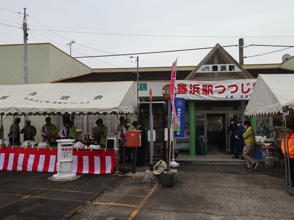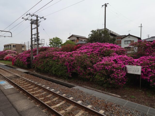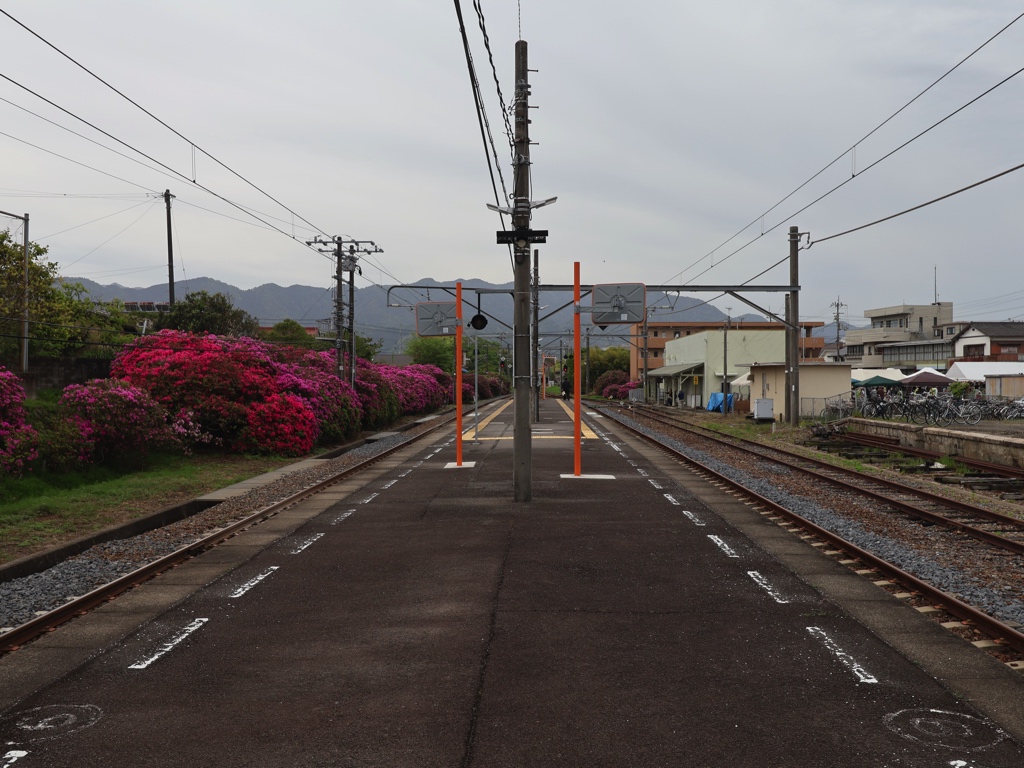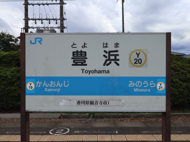 豊浜駅 予讃線の駅、豊浜の改札画像です。 駅名標 ”WELCOME香川県”のロゴが入った駅名標も設置されているが、こちらの駅名標には当駅の駅番号が貼られていない 新しいタイプの駅名標 駅舎、分割民営化後にリニューアルされたと思われる木造駅舎が使用されている 駅舎前には白ポストが置かれており、悪書追放に熱心な土地柄が垣間見える 当駅は無人駅となっており、改札口は存在しない 駅舎ホーム側には集札箱が設置されている かつての窓口跡は封鎖されている 駅舎内部は待合室となっている 駅舎からホームへは構内踏切を渡り連絡する ホームは島式1面2線となっており、列車の行き違いが可能である 当駅の名物は2番のりば側線路沿いに植えられたツツジであり、毎年4月下旬〜5月上旬ごろには美しい花を咲かせる ツツジが見頃の時期に合わせて、「豊浜駅つつじ祭」が毎年行われている つつじ祭の日には駅前広場では出店やイベント等が行われ、多くの人出で賑わう ツツジが見頃の時期にはツツジと一緒に列車を撮影することもできる ————————————————— 所在地:香川県観音寺市 乗入路線 ■ 予讃線