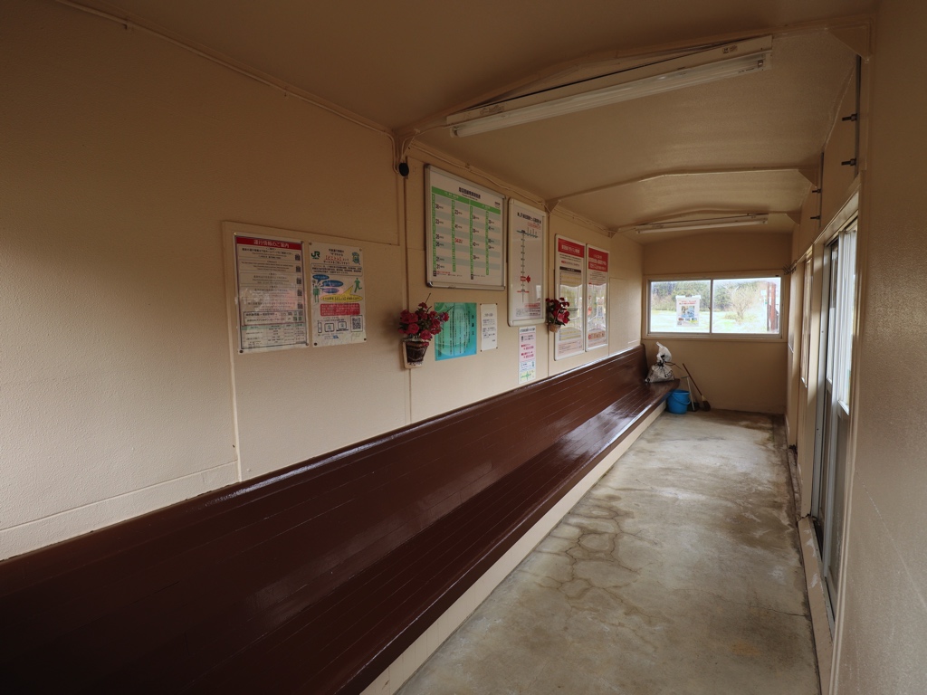 羽前前波駅 陸羽西線の駅、羽前前波の改札画像です。 駅名標、4ヶ国語表記に対応している。当駅は利用者が僅少であることから、2026年1月16日の陸羽西線列車運行再開後は全列車が通過となり、営業休止が継続されることとなった 4ヶ国語表記非対応の駅名標も設置されている 駅全景、当駅は盛り土上にホームと待合室が設けられた無人駅であり、駅舎および改札口は存在しない ホームは盛り土上にあるため階段を上がる必要がある。なお営業休止となった現在ではホームへの立入は禁じられているようである ホーム上に待合室が設けられている 待合室内部の様子 ホームは単式1面1線の棒線駅であり、列車の行き違いは不可能である。陸羽西線の列車運行は再開したが、当駅に列車が停車することはない ————————————— 所在地:山形県最上郡戸沢村 所属路線 ■ 陸羽西線(奥の細道最上川ライン)
