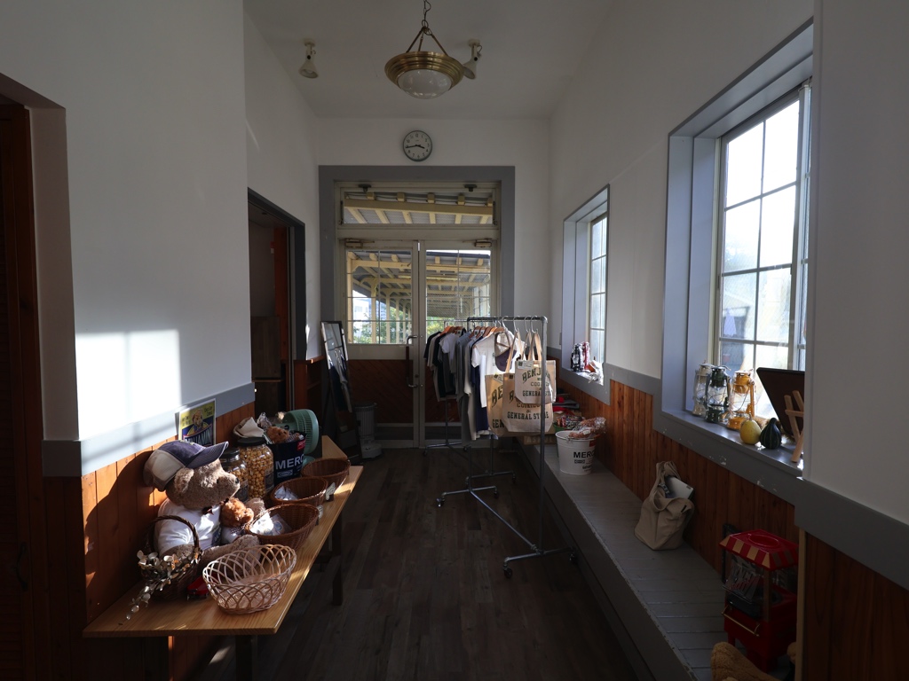 かつて駅の待合室やきっぷうりばが設けられていたと思われるスペースは喫茶店の物販スペースとして活用されている