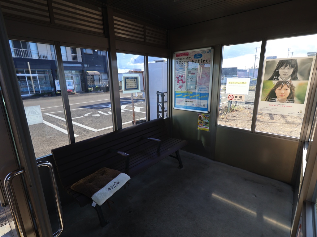 駅舎内部は小ぢんまりとした待合室となっている
